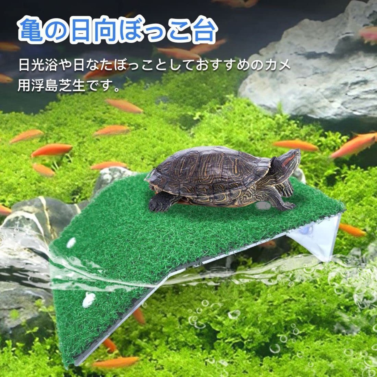 亀 浮き島 水槽台 人工芝 芝 休憩 吸盤 爬虫類 日なたぼっこ 両生類 ひなたぼっこ 生息地 登り石 シェルター (大 サイズ)