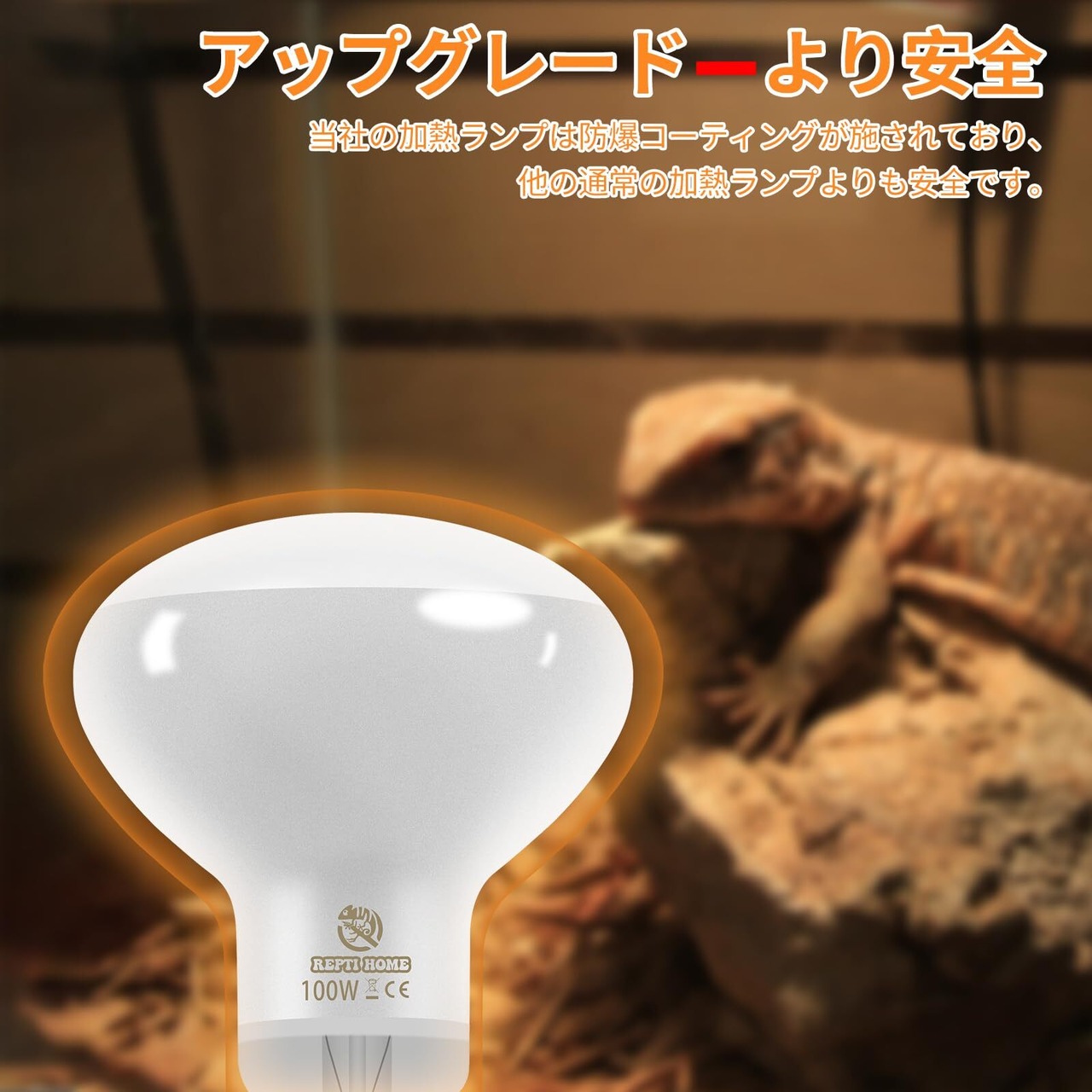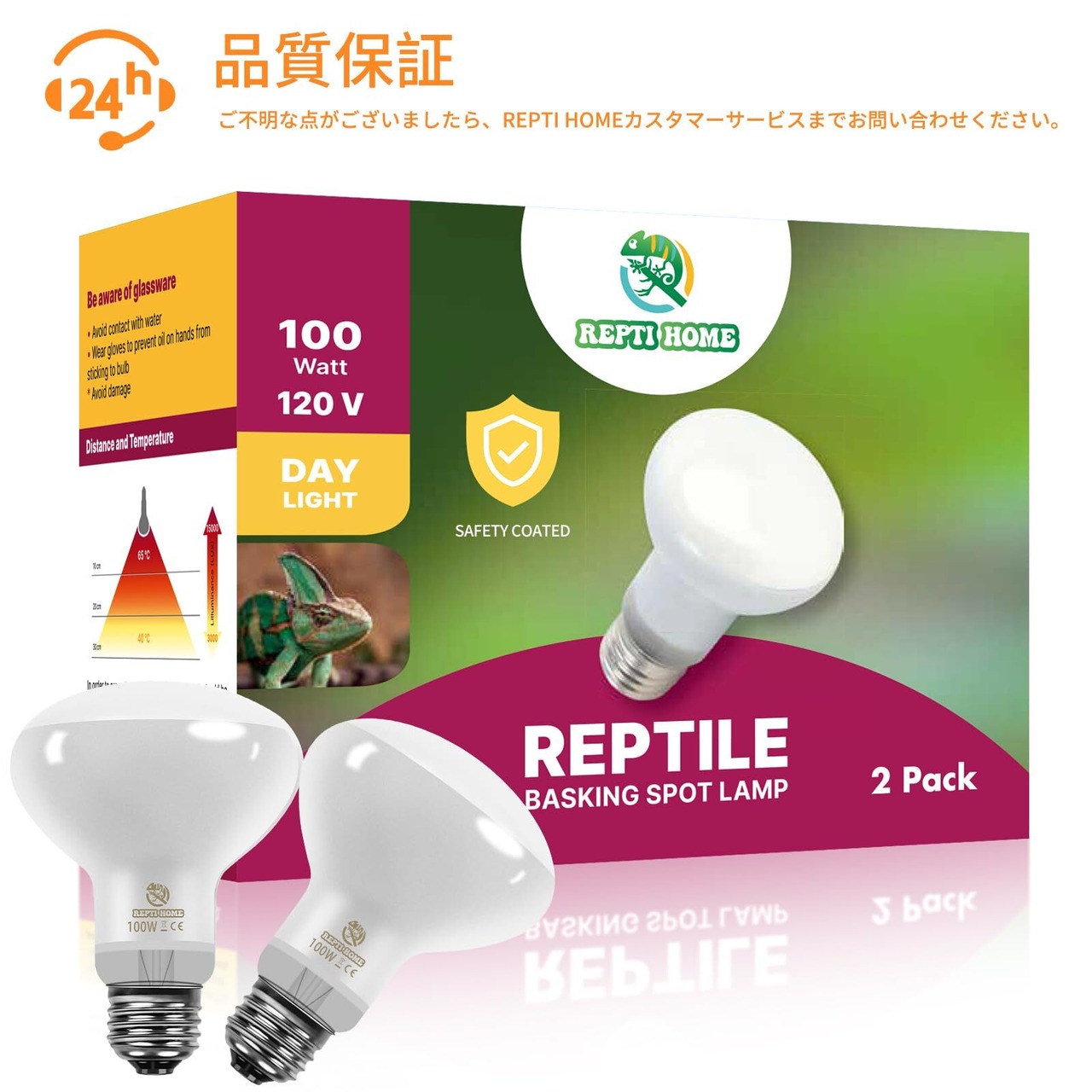 REPTI HOME バスキングライト 防爆コーティング 爬虫類 サングロー 100W 2個 爬虫類 ライト 紫外線ライト 爬虫類 日光模擬 UVA&昼用集光型スポットランプ 爬虫類 保温電球 ヒゲドラゴン、トカゲ、亀等用