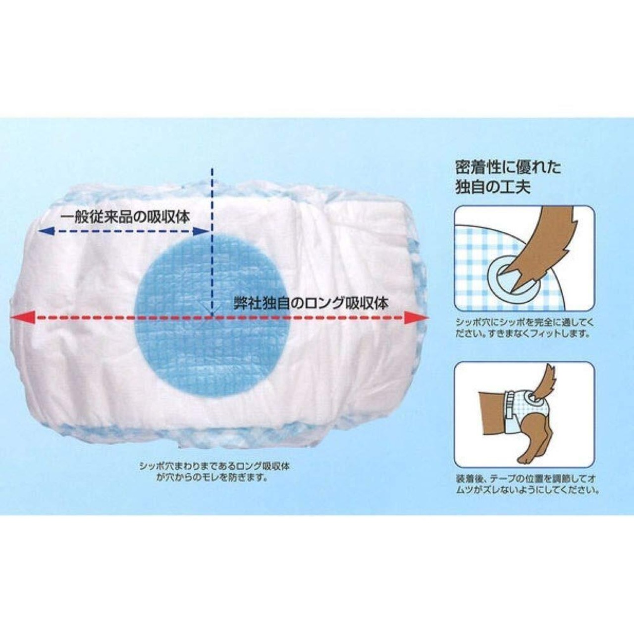 動いても安心W(ダブル)ホールド。介護用・お出かけ用・生理用・おもらし対策etc・・・快適な生活に! ! ぴたっと密着しっぽ穴でモレ安心! しっかり超吸収ガードで長時間安心! 車、カフェ、室内ドッグランや、猫ちゃんにもご使用いただけます。 胴周り: 30~45㎝、適応体重: 3~6kg、しっぽからウエストまでの長さ: 26cm、代表的な犬種・猫種(成犬・成猫時):ヨークシャテリア、マルチーズ、ミニチュアダックスフンド、一般的な猫 など