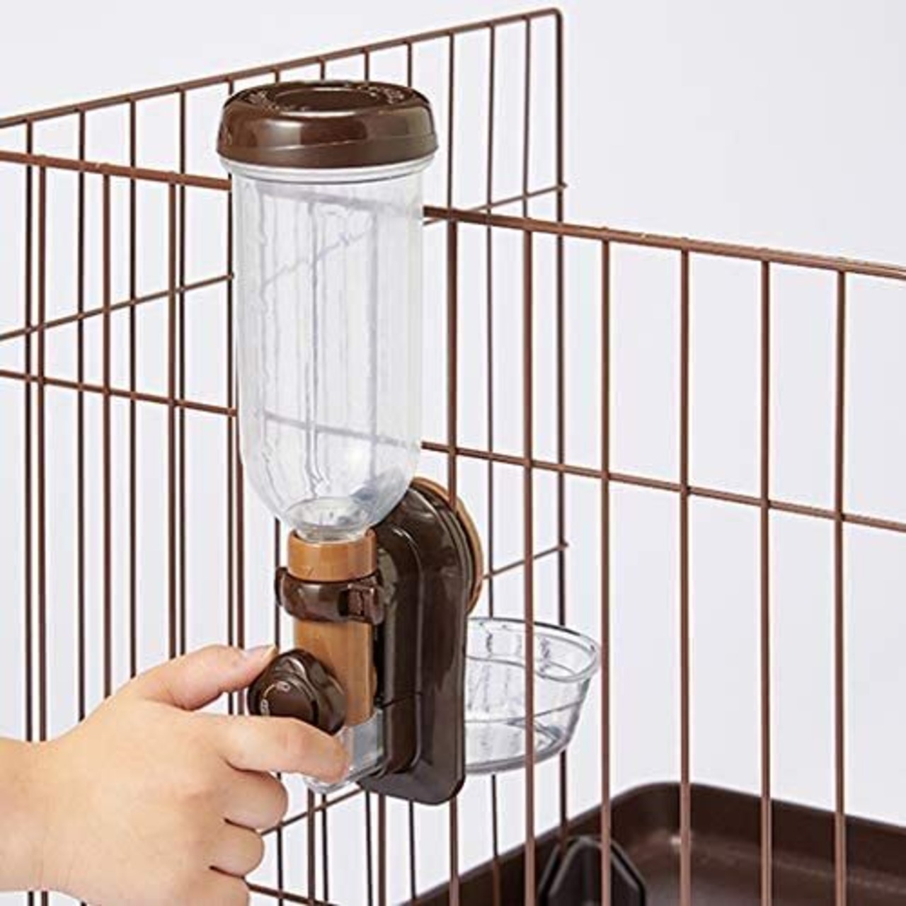 らくらく飲めて、らくらく洗えるボトル付きケージ取り付け式給水器です。ボトルは、上から継ぎ足しもできメモリがついているので健康管理にも便利です。たっぷり飲める幅広皿で、透明で中が見えやすく、お皿だけ外してサッと洗うことができます。市販の500mlペットボトルが使用できます。漏れにくい止水コック付きで安心です。