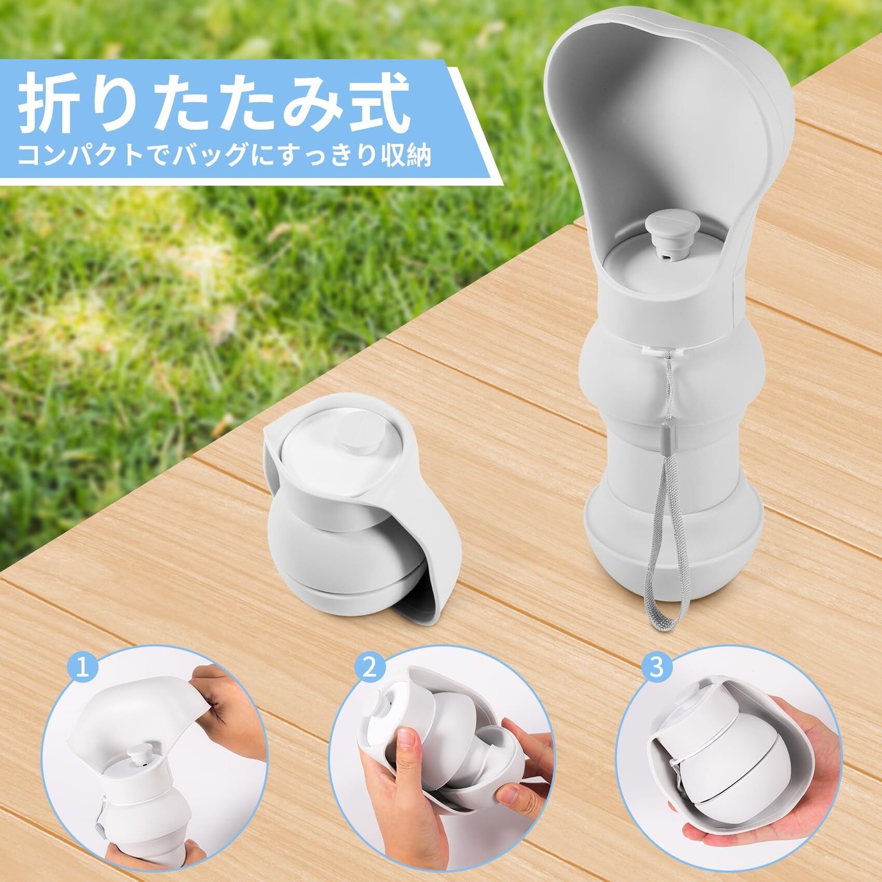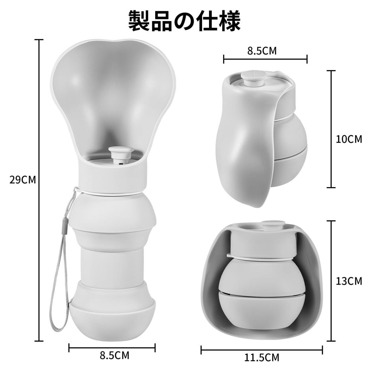 Kailund ペットウォーターボトル 折りたたみ 550ml シリコン製 ペット給水ボトル 水槽付き ストラップ付き 水漏れ防止 水分補給 コンパクト 携帯用 散歩 アウトドア 犬 猫 グレー