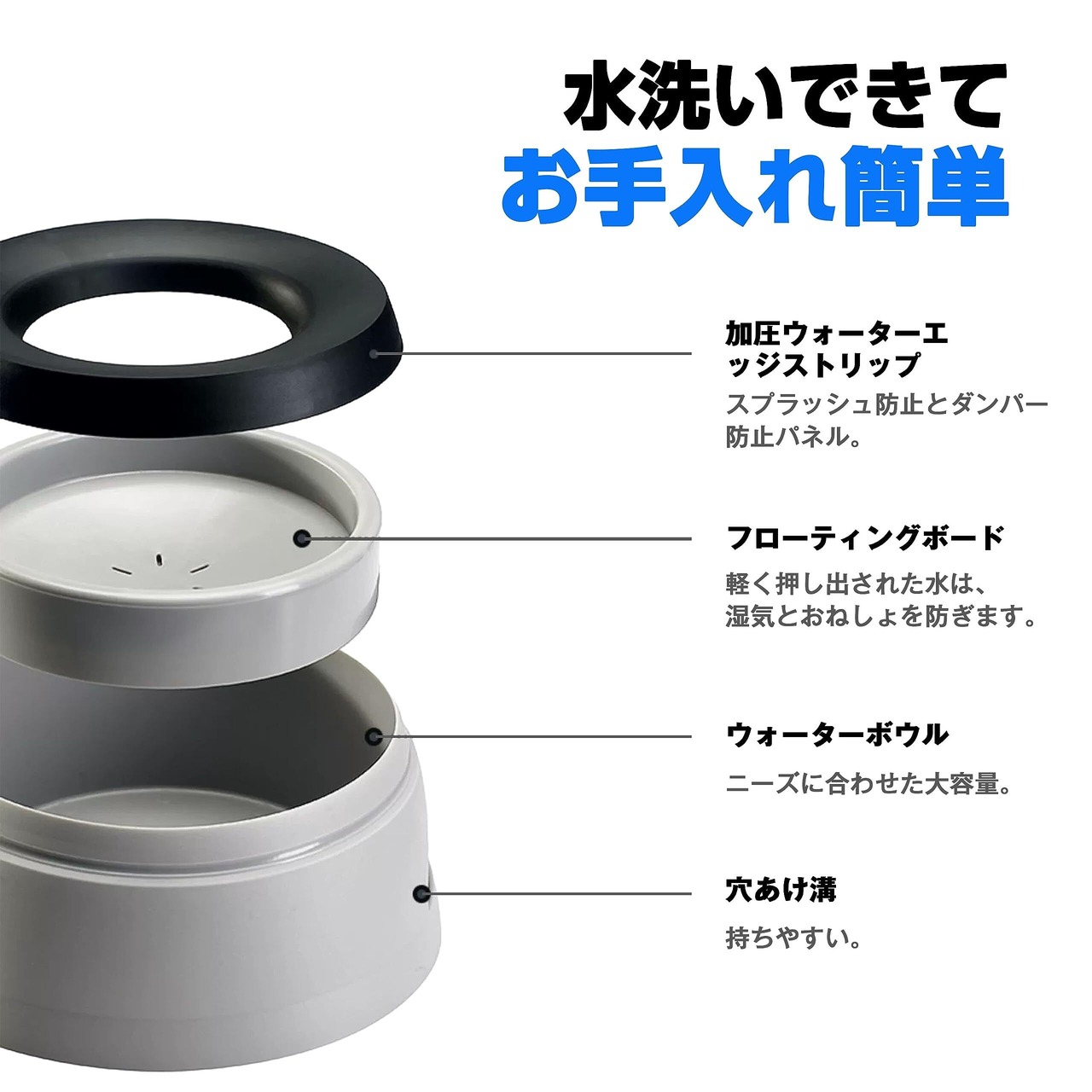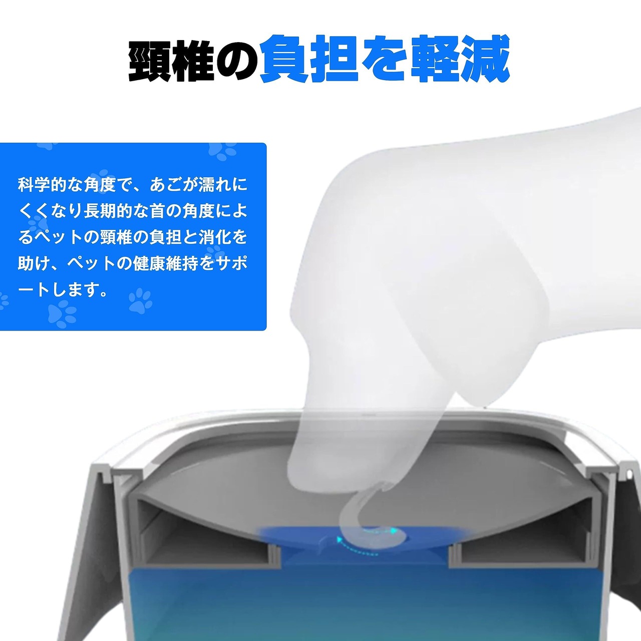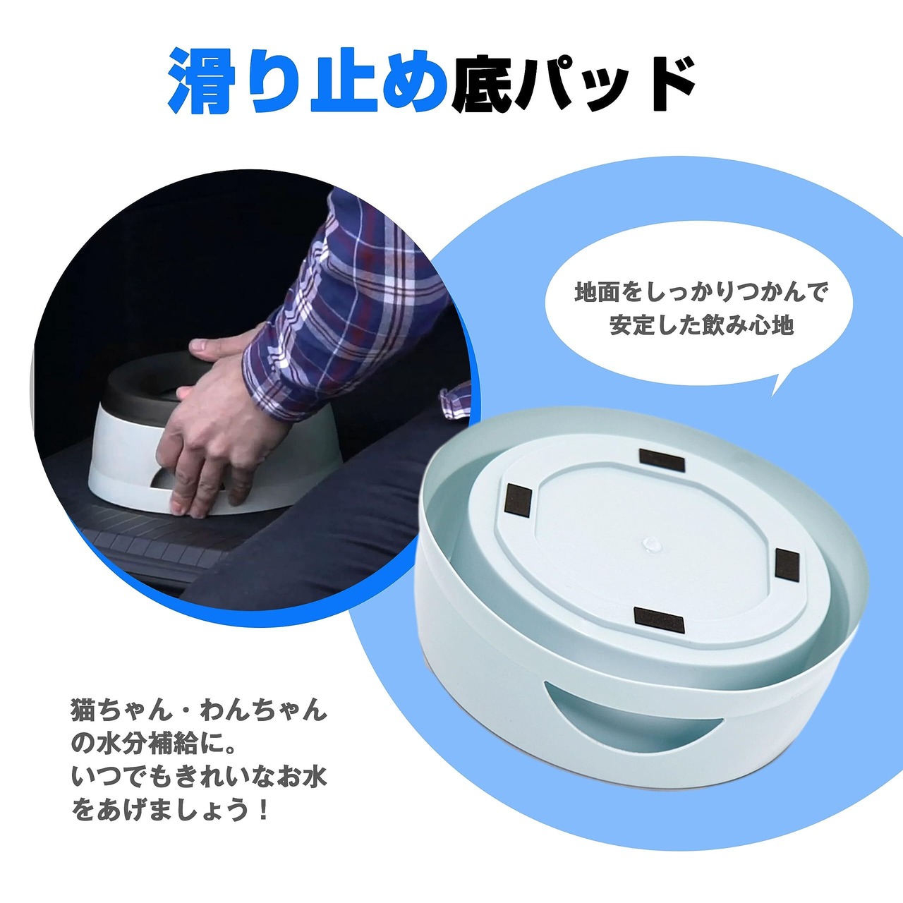 【使い勝手の良さ】ペットが水を飲んでいるときは、水の乱れやペットのこぼれが少なくなり、床がきれいになります。