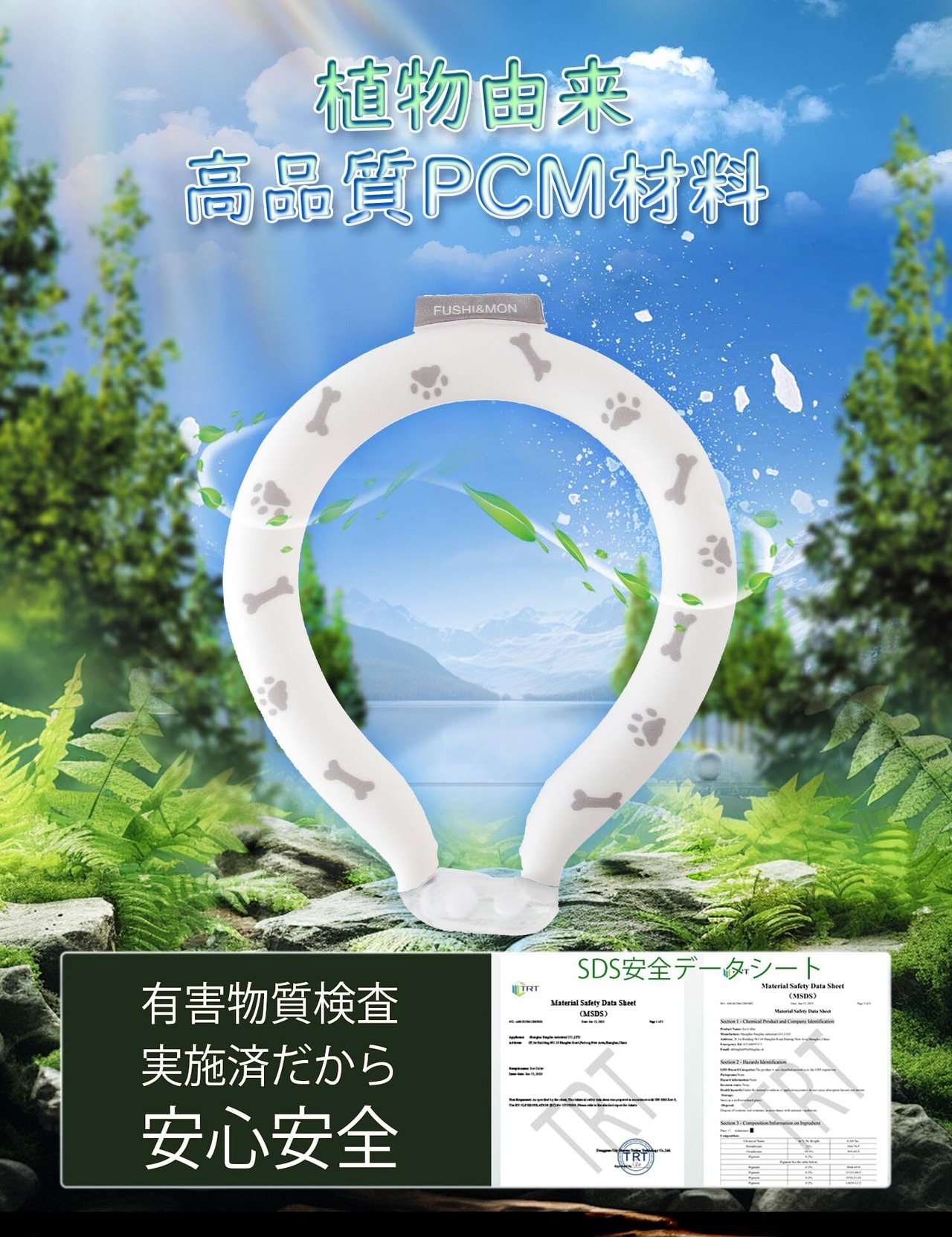 【安全性と耐久性】PCM(中の液体)はNASAが急激な温度変化から宇宙飛行士を守るために研究開発した冷却素材。・TPU(外の触れる部分)は食器にも使用されているウレタン樹脂を使用。プラスチックよりもさらに弾力性と柔軟性があるので破れにくい。ペットが安全で安心して使用できます。