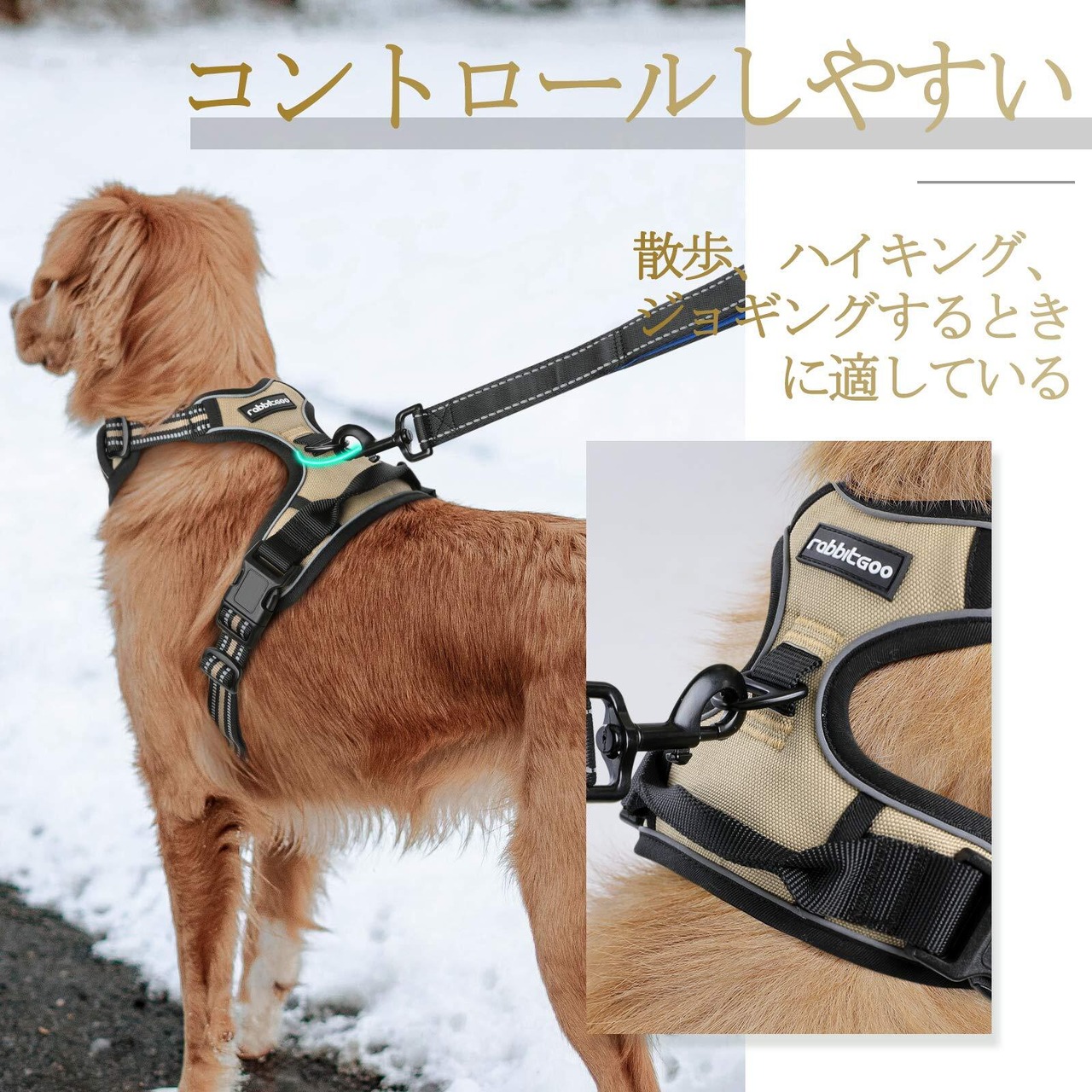 Rabbitgoo 犬 ハーネス 小型犬 5-15KG ソフト かわいい 犬用胴輪 引っ張り防止 負担が少ない首輪 サイズ調整可 夜間反射 抜けない 通気性 咳き込み防止 散歩 歩行補助 老犬介護 しつけ 運動向き 犬 中型犬 大型犬 柴犬 秋田犬 (カーキ色)