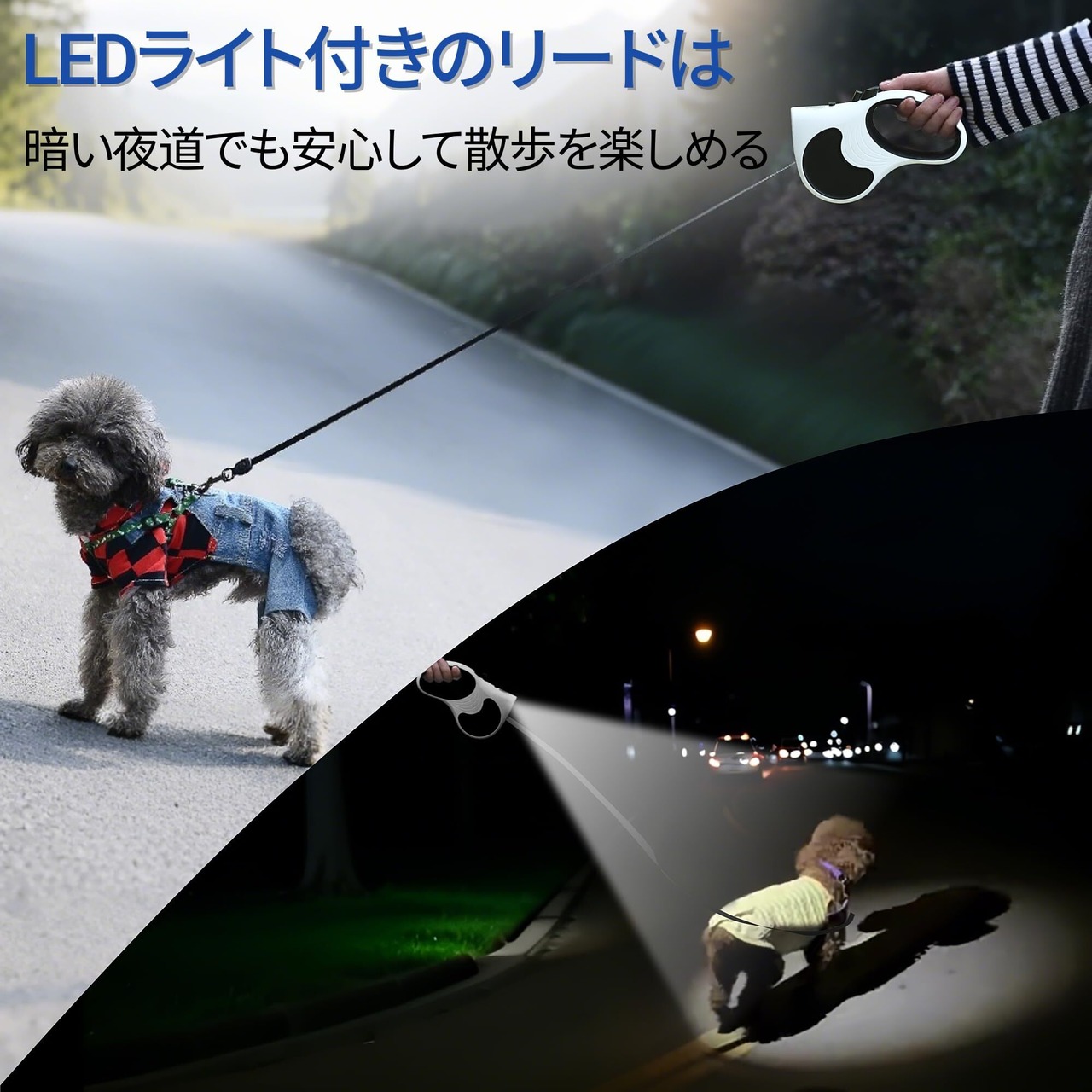 Readaeer 伸縮リード 犬リード LED ライト付き 小型犬 中型犬 長さ5メートル 取り巻き式 コンパクト(ホワイト)