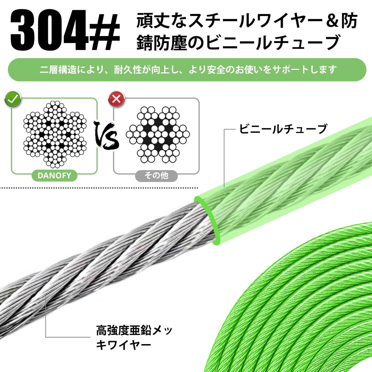 DANOFY 犬 ワイヤー 係留 リード ケーブル - 犬用 係留ケーブル 5mm極細 カラビナ ロック付き 錆び付かない ランナーケーブル しつけ用 訓練リード 外飼い 庭 キャンプ 小型犬 中型犬 大型犬対応 グリーン 3m
