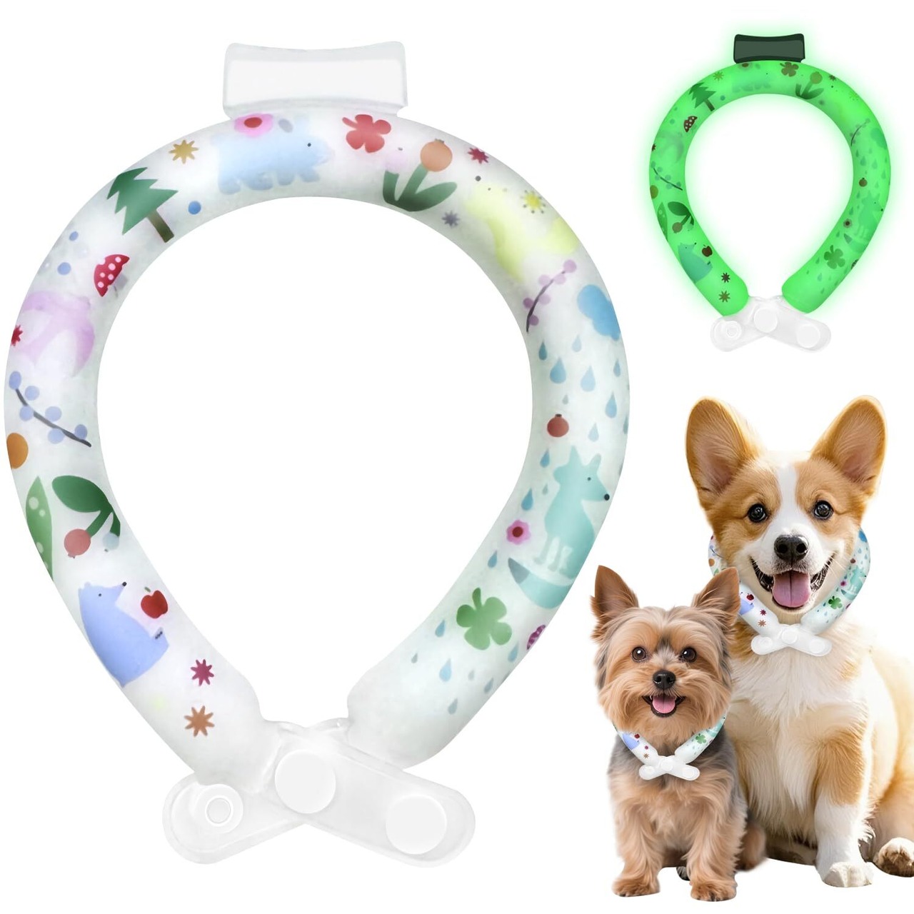 OSZNMMG クールリング 犬 ネッククーラー 暑さ対策 ペット用 冷え首輪 首冷やす 冷感 クールネック 熱中症対策 ボタン付き 28℃凍結 夜光効果 中小型犬通用