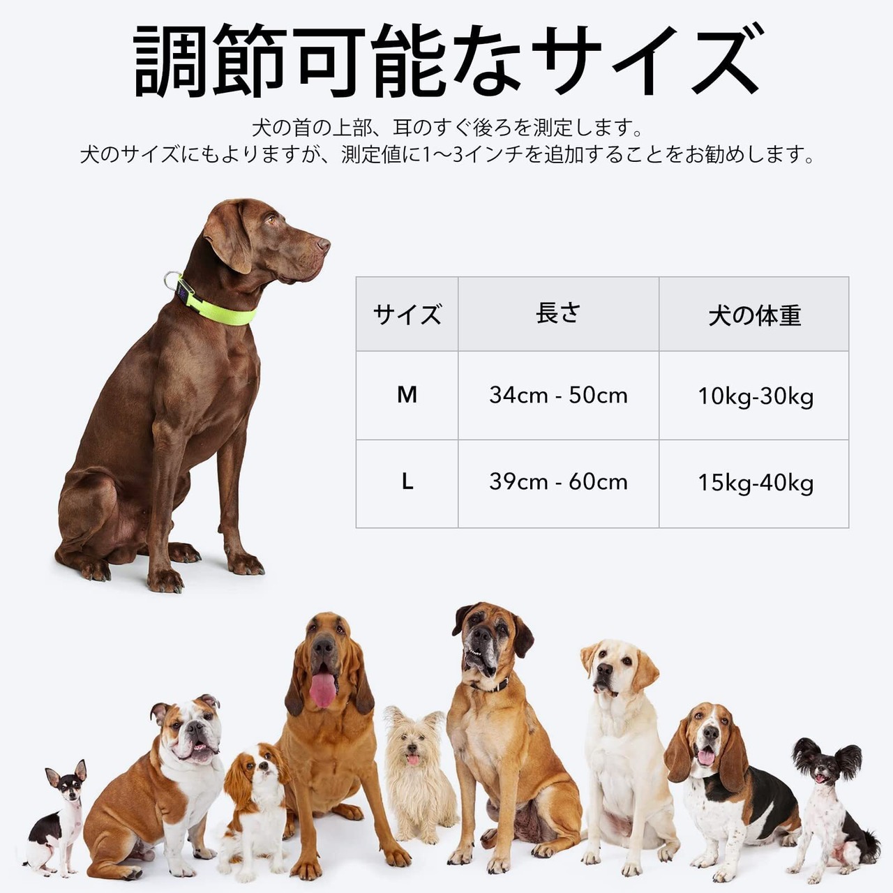KOSKILL LED光る首輪 犬用 散歩 夜 ライト USB充電式 小型犬 中型犬 大型犬 安全性 サイズ調整可能 視認距離500mで夜間も安心(グリーン, M)