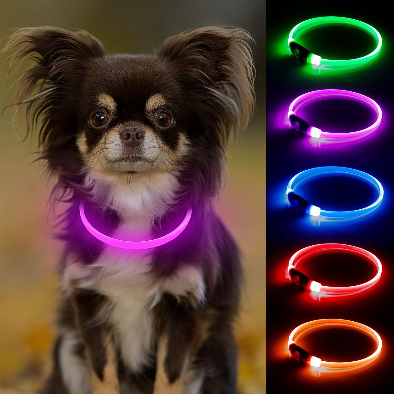 Candofly 光る首輪 小型犬 - 犬 散歩 ライト 充電式 LED 犬くびわ小型 光る 猫 首輪 犬散歩夜ライト (ピンク)