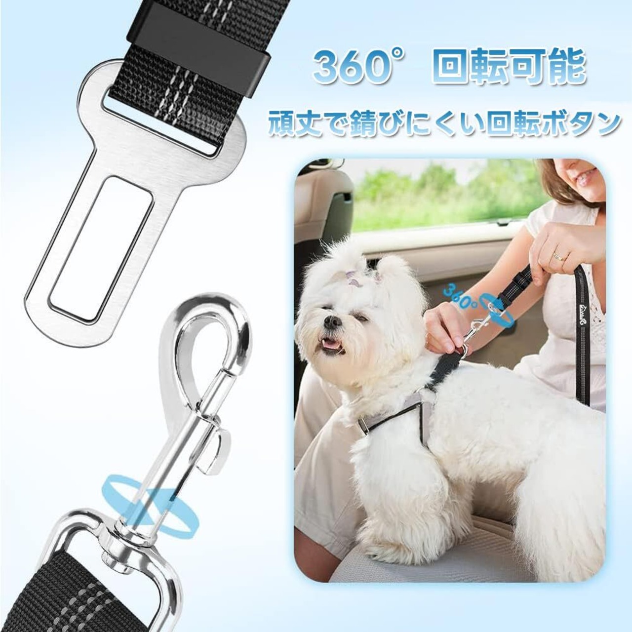 【使い勝手】犬用シートベルトに360度フックを採用。取り外しが簡単な犬猫兼用シートベルトなので、飼い主も安心です。散歩用の導線も使えます。また、反射ベルトのデザインにより、犬が夜間に外出することもより安全になります。