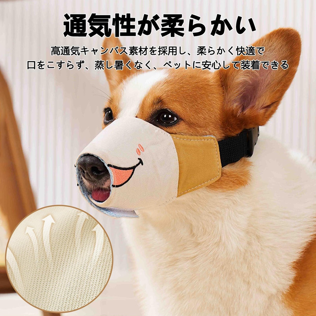 【通気性抜群の柔らか素材】 犬用マズルは通気性の良いキャンバス素材を使用し、柔らかく快適な着け心地。口元にやさしくフィットし、擦れにくく蒸れにくい設計です。過度な食べ過ぎや噛みつきを防ぎつつ、呼吸や体温調節を妨げないため、愛犬も安心して使用できます。