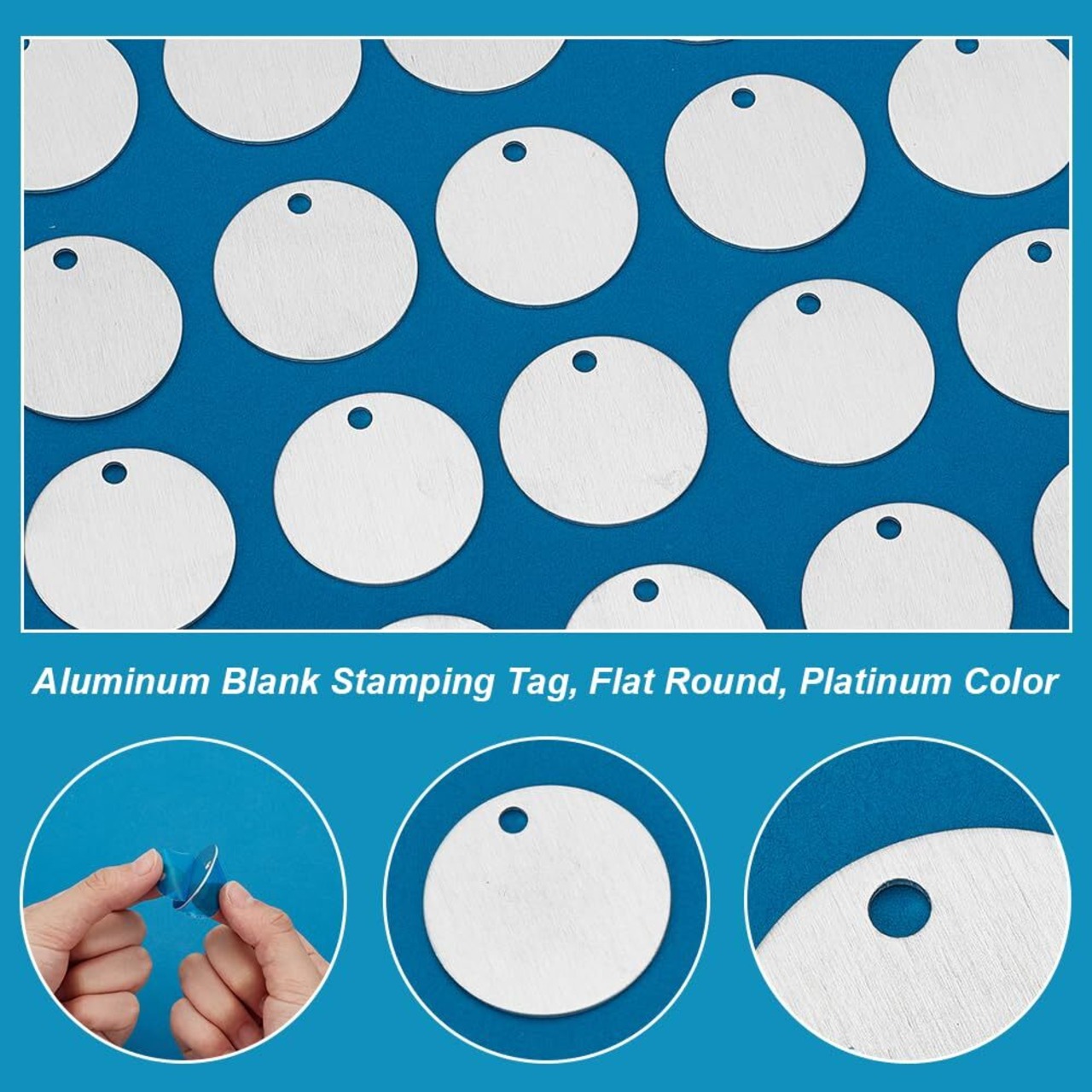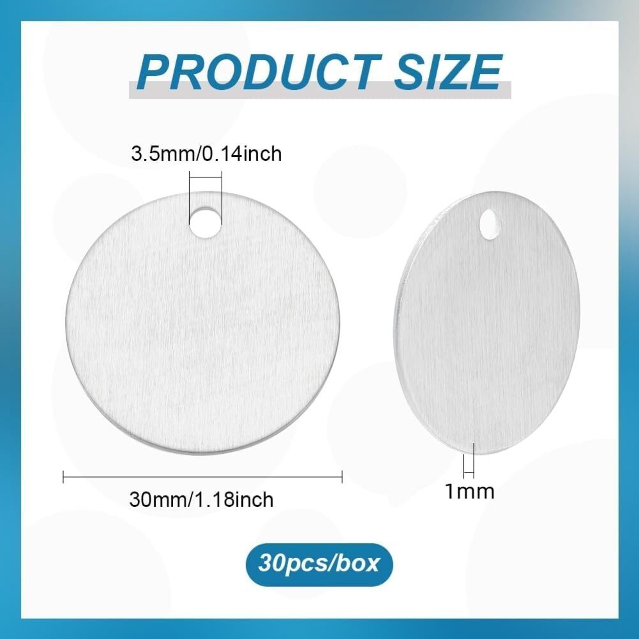 BENECREAT 30枚アルミ札 ネームタグ トラベルバッグタグ DIYブランクアルミ札 迷子札 猫犬 首輪用 IDタグ 刻印 名入れ DIY工芸品札 円形