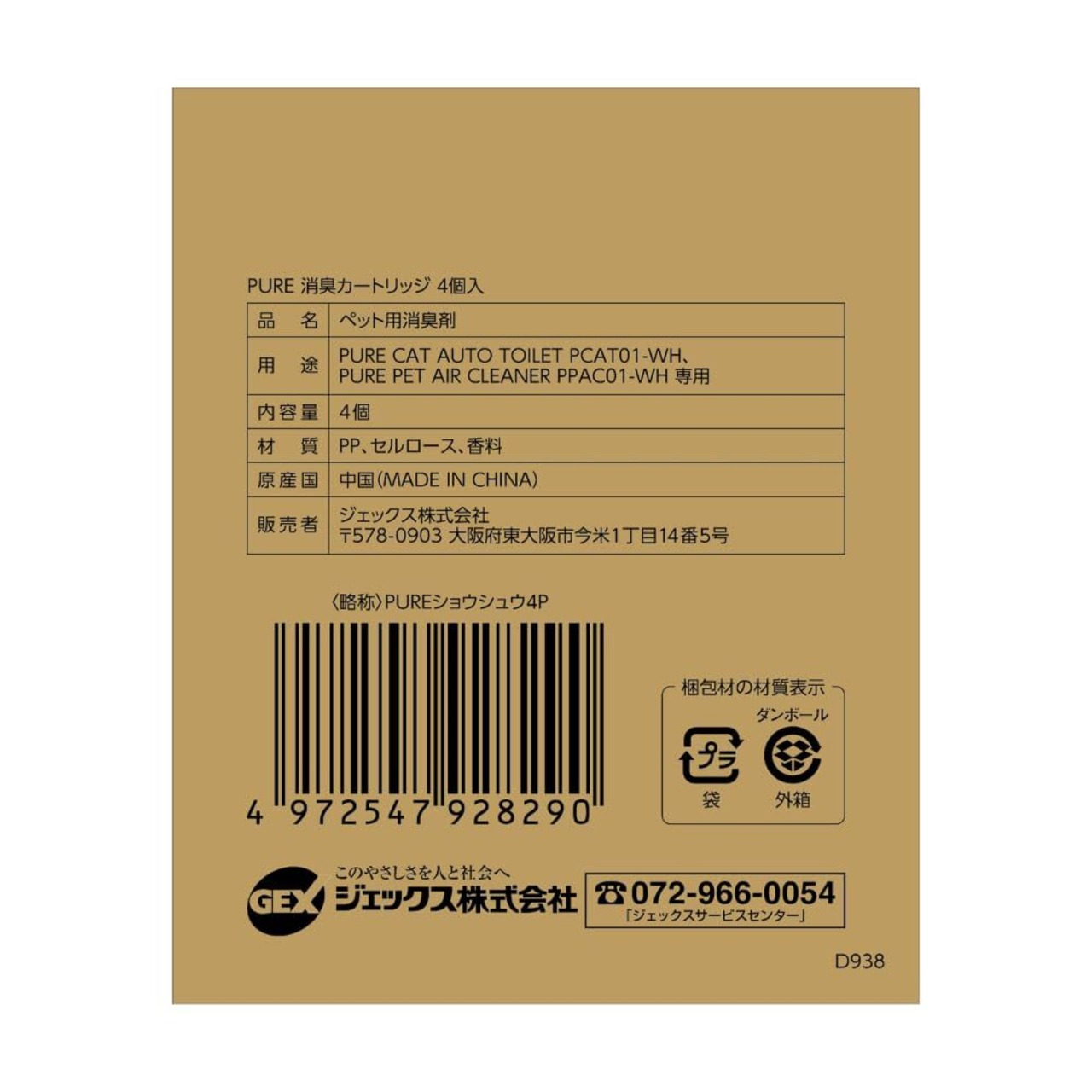 ジェックス【 PURE 】 消臭カートリッジ 4個入 森の香り 消臭ビーズ入り 1ヶ月用 PURE CAT AUTO TOILET・PURE PET AIR CLEANER