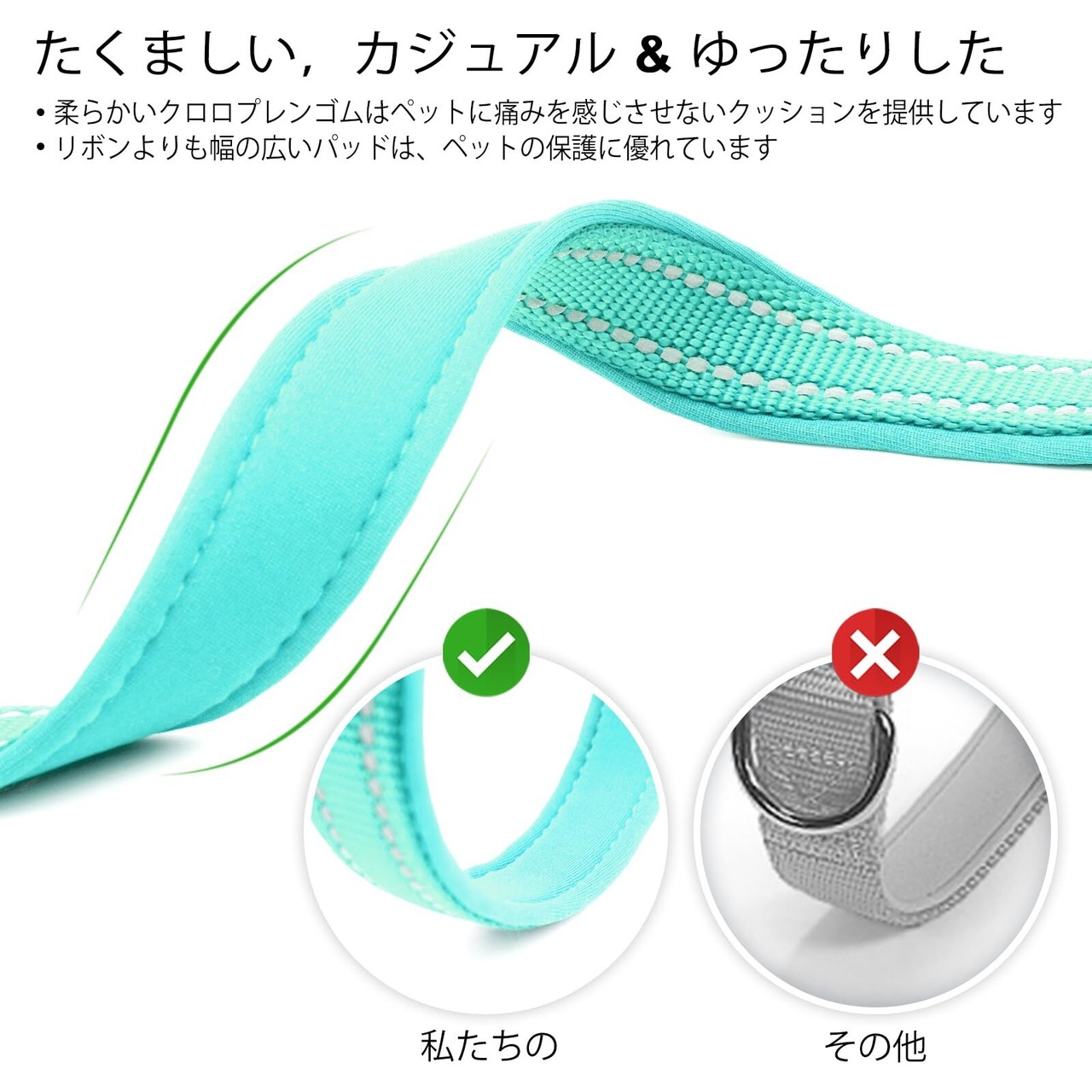 azuza 反射犬の首輪、柔らかいクロロプレンゴム充填ペット首輪、IDマークリング付き、調節可能、子犬、ブルーグリーン、S