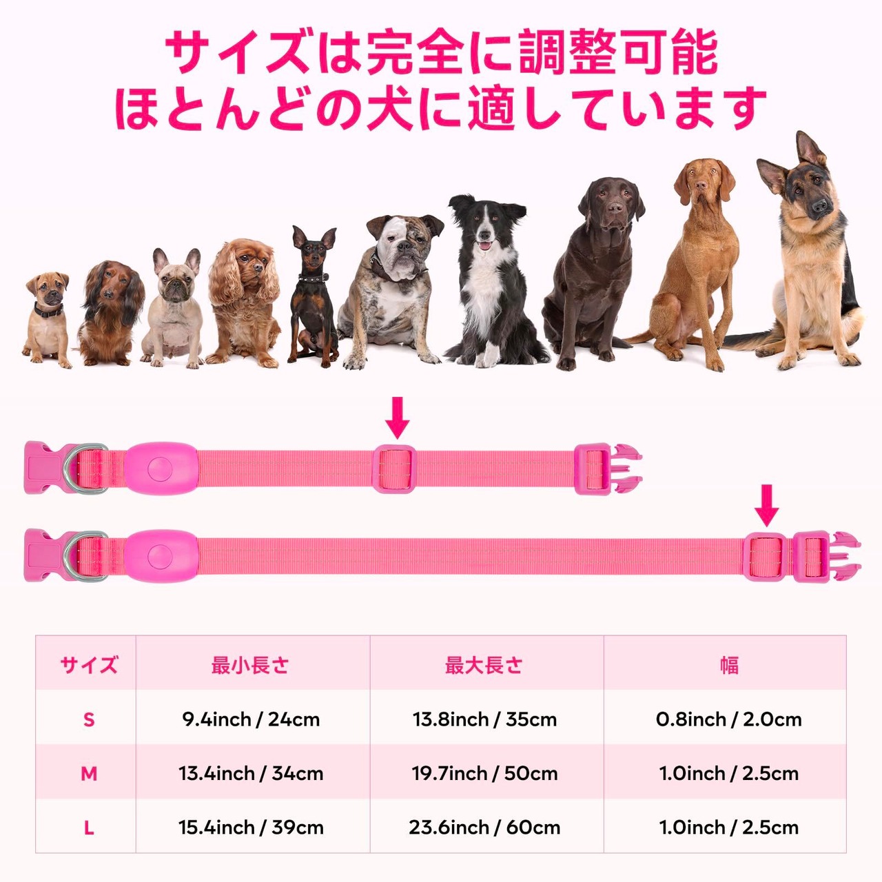 LED 光る首輪 犬 散歩 ライト 夜 ライト 超高輝度 USB充電式 暗闇で光る安全首輪 サイズ調節可能 視認距離500メートル 防水 超高輝度 犬 首輪 (ピンク, S)