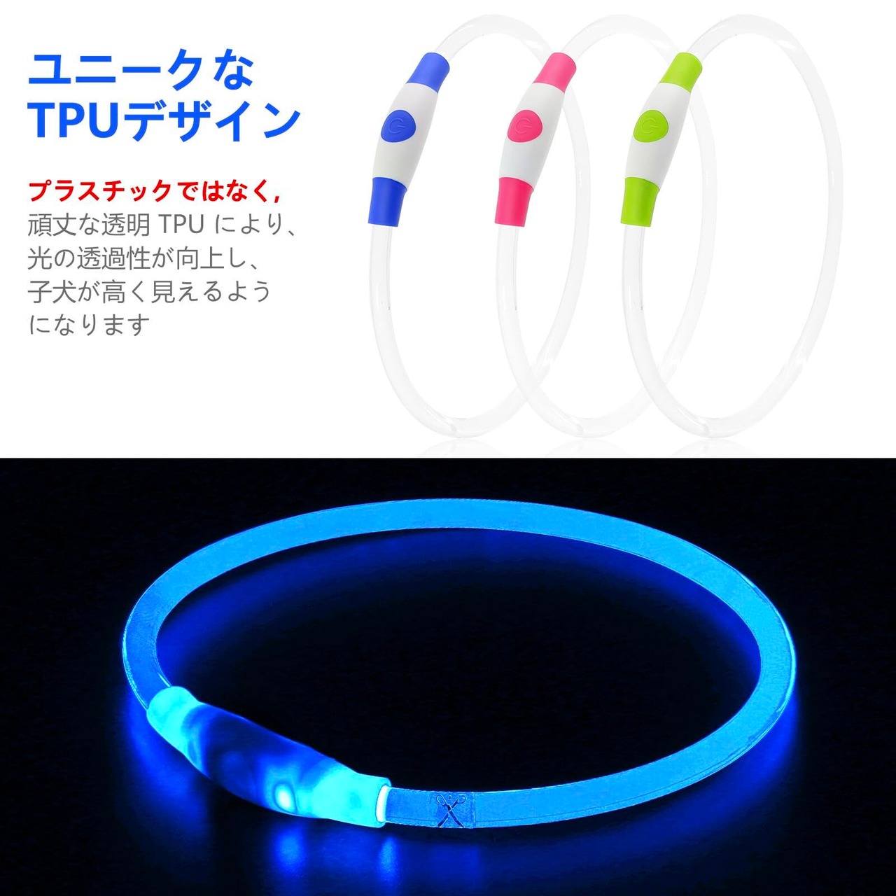 PZRLit 光る首輪 犬 散歩 夜 ライト USB 充電式 視認距離500m 長さは70cm サイズ調整可能 ペット お散歩 猫 小型犬 中型犬 大型犬 LED発光首輪 -ブルー
