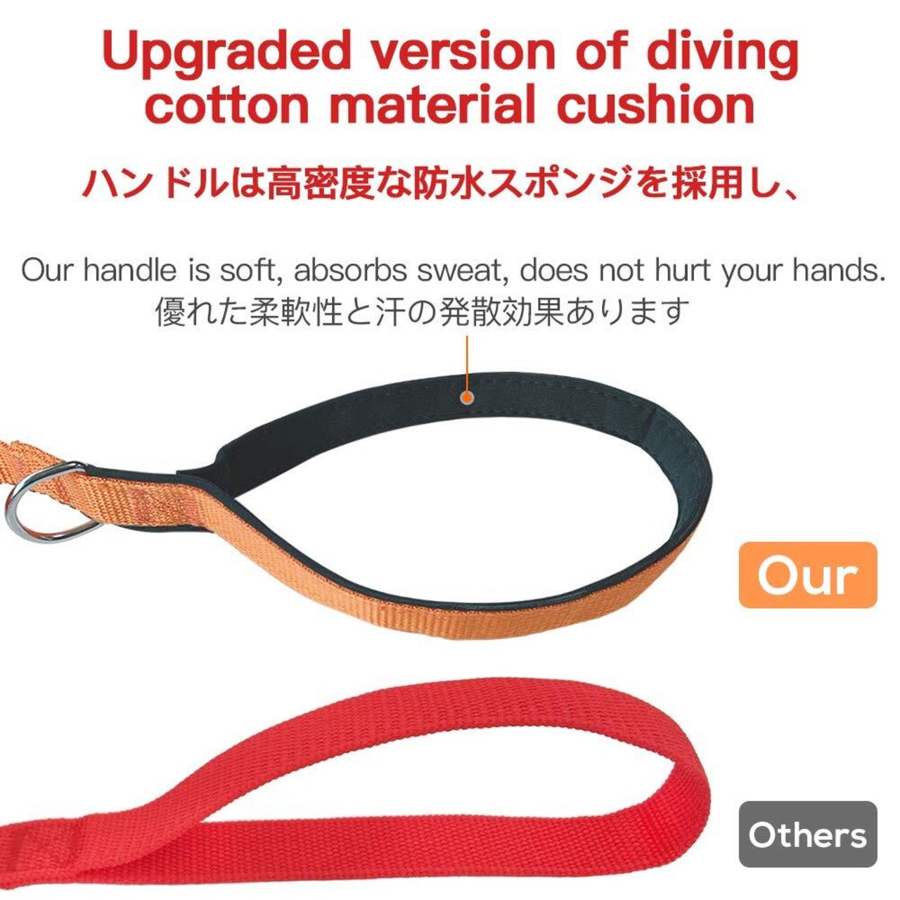 【ロープ長さを自由に調節可能・広い使い方】 ハンドルは高密度な防水スポンジを採用し、優れた柔軟性と汗の発散効果ので、長い距離を歩いたり走ったりしても、手は刺激されません。ハンドルをウエストに巻いたり、たすき掛けにしてジョギングなど使い方は自由自在です。別に、ロープの長さを調節できます、木や柱等に簡単にも係留し、ペットを自由に遊ばせます。