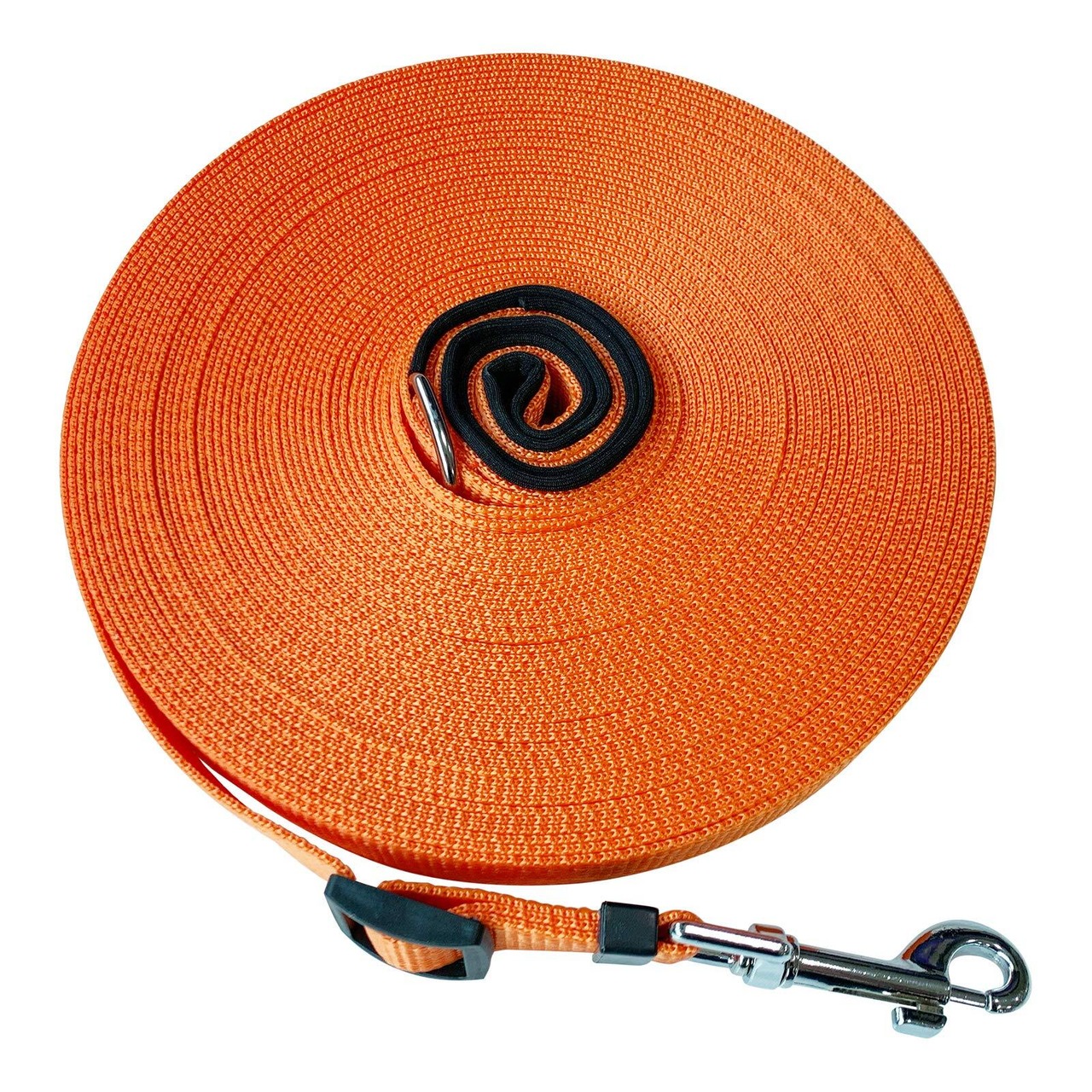 犬用リード ロング 牽引ロープ 長い 小型・中型・大型犬用 訓練・しつけ用 散歩 山登り 水に浮く ナイロン製 丈夫 長さ調節 係留ケーブル (15m, オレンジ)
