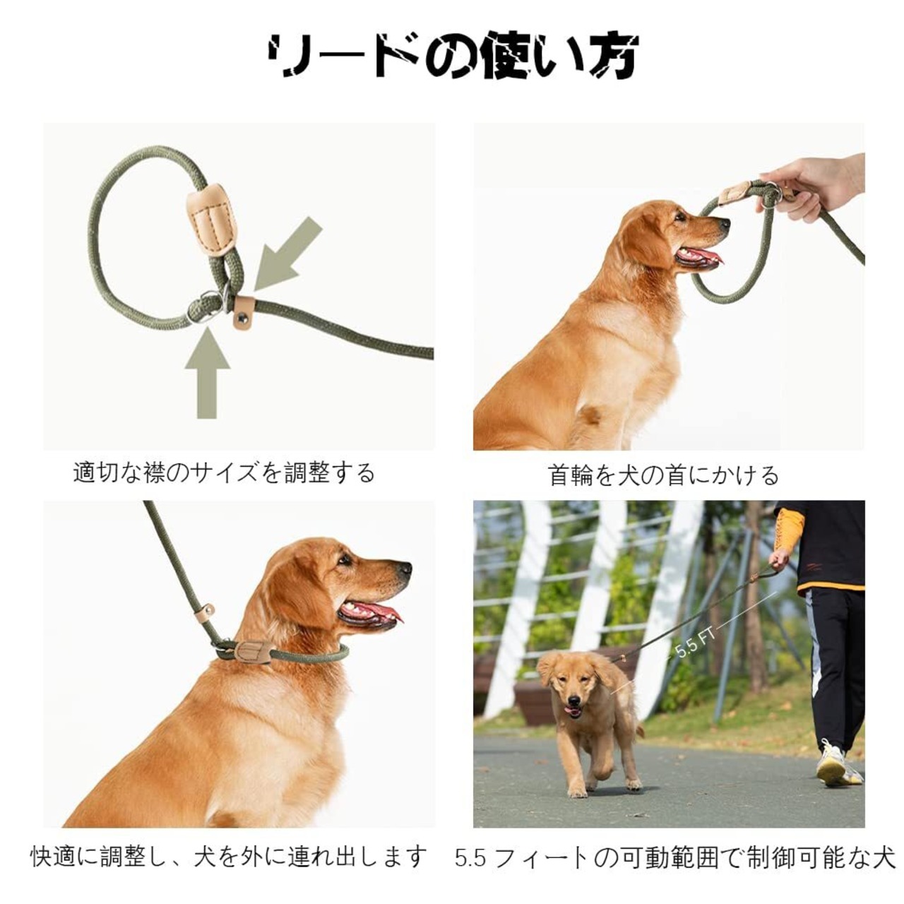 【引っ張り防止】ナイロントレーニングリード、引っ張り癖のある犬へのトレーニングリードですが、ワンちゃんは前に急いで引っ張る場合ロープを自動的に締めます、犬がリラックスしたらロープはゆっくりと緩みます。ご愛犬の癖を直す効果かありますが、締まり過ぎなら犬の怪我を起こすため、必要以上に引っ張らないように注意してください。