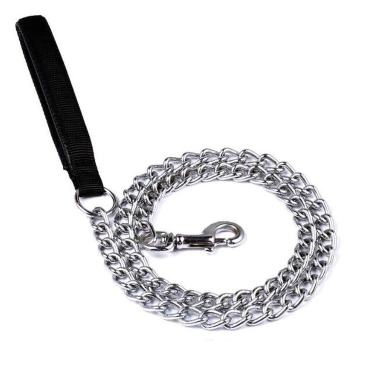 HJ 愛犬用リード 引き紐 金属製 ステンレスチェーン 丈夫 ロングリード しつけ用 小中型犬対応 散歩 お出かけ用 ブラック (2.0mm, 1本セット)
