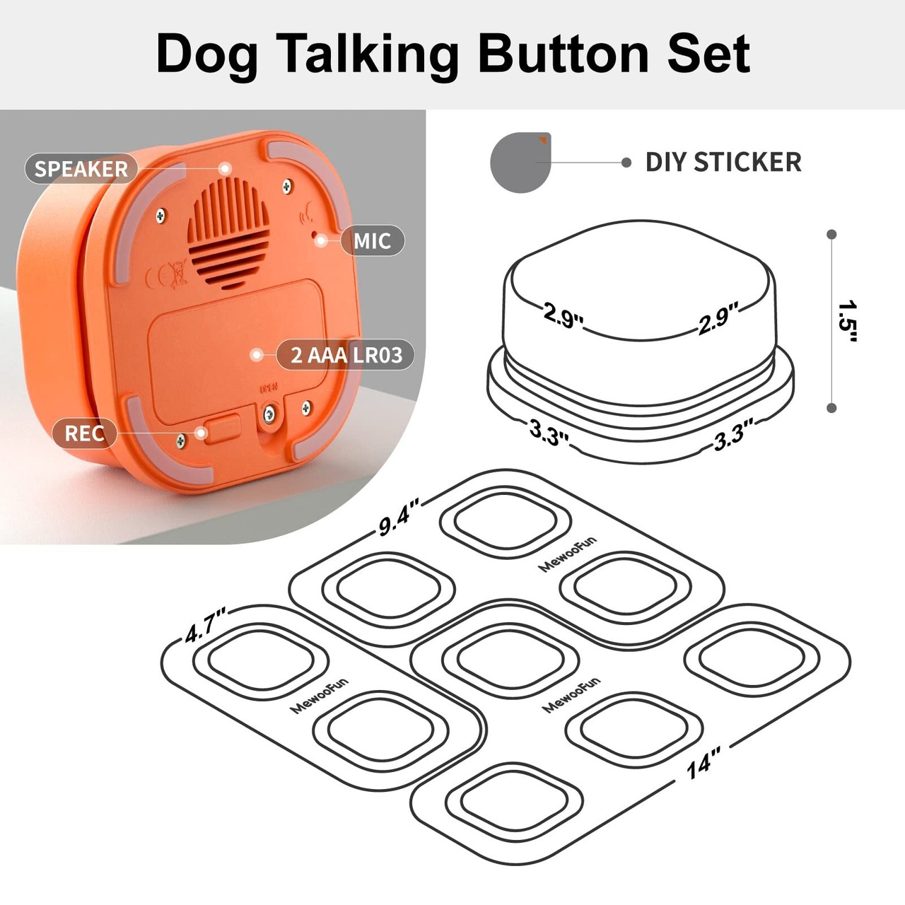 【中型・大型犬用会話ボタン】MEWOOFUN犬用の録音可能なボタンは、興味深いコミュニケーションツールです。メッセージや命令を録音し、犬を反復トレーニングして、自分の気持ちを表現する方法を教えることができます。強力な接着力を持つベルクロで、ボタンが床やマット上で滑るのを防ぎます。