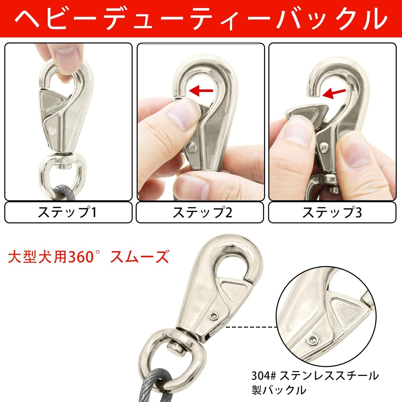 ドッグリーシュワイヤー:MiderHao ドッグリーシュワイヤー直径5mmのステンレスワイヤー製で、錆びにくいPVCコーティングが施されています。この優れたアウトドア用リードは、体重60KGまでの犬に耐えることができます。
