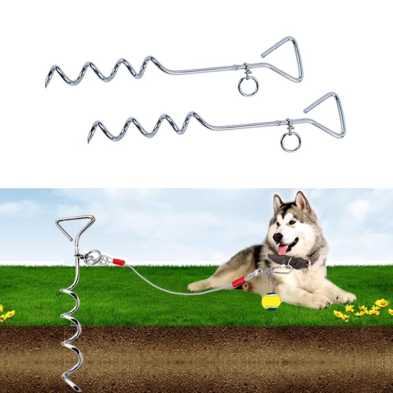 2個 犬用 頑丈スパイラルステークセット ー キャンプやアウトドアに最適なタイダウンアイテム