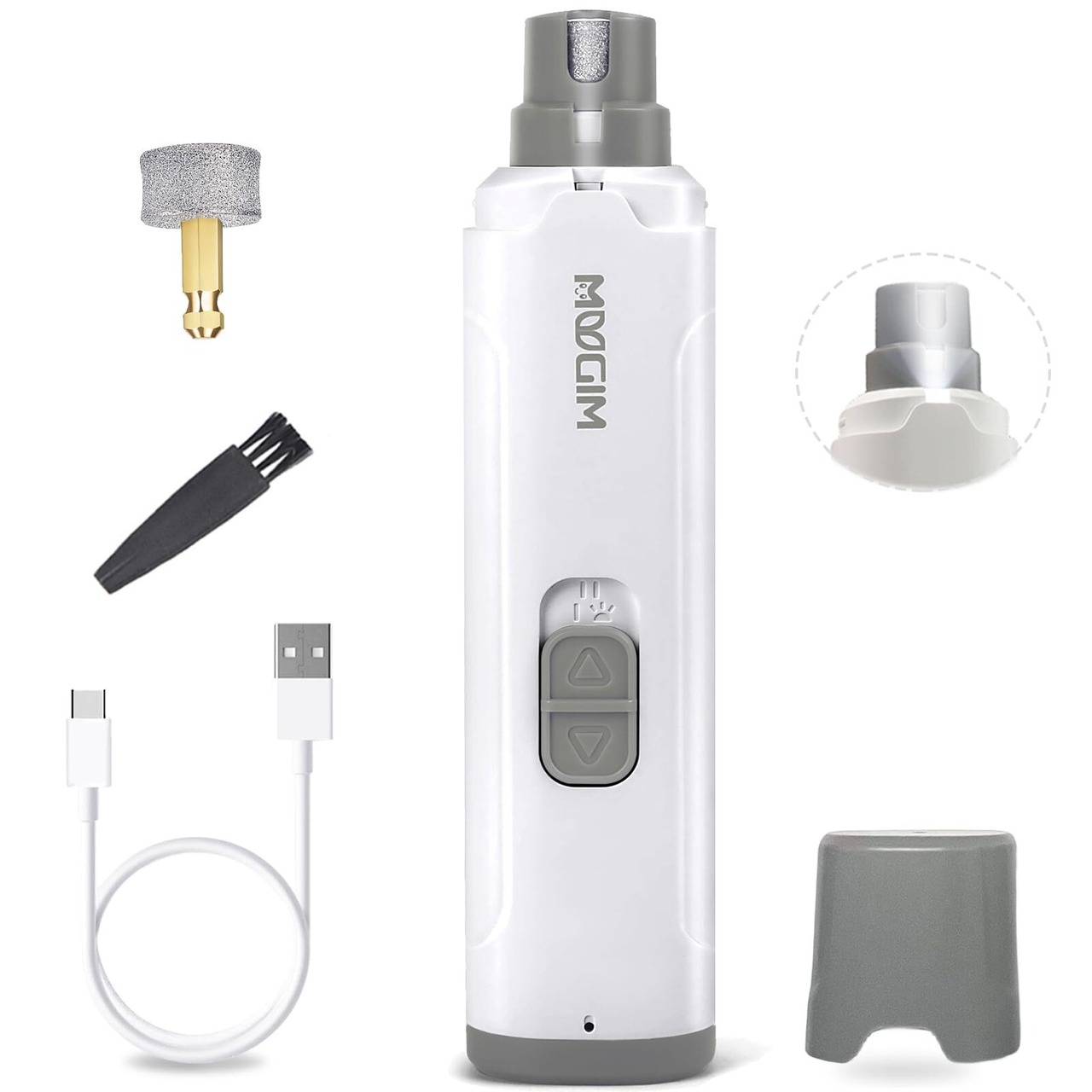 MUGIM ペット用電動爪やすり LEDライト付き 犬猫兼用 爪の血管を照ら 2段階の速度調節 小動物用爪研ぎ器 爪切り 爪とぎ 爪削り 爪鑢 USB充電式 予備の研ぎヘッド付き
