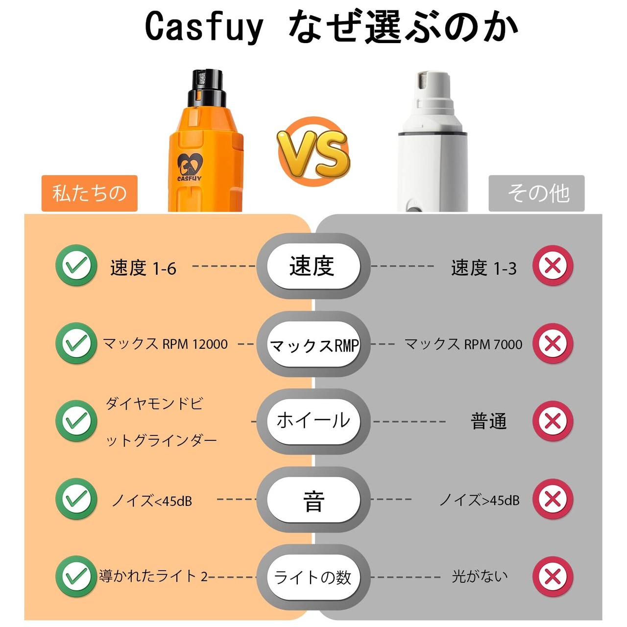 Casfuy 犬爪切り電動 6スピード - 最新の強化されたペット用ネイルグラインダー 充電式電動犬用ネイルトリマー 痛みのない足の手入れとスムージングツール 大型中型小型犬用