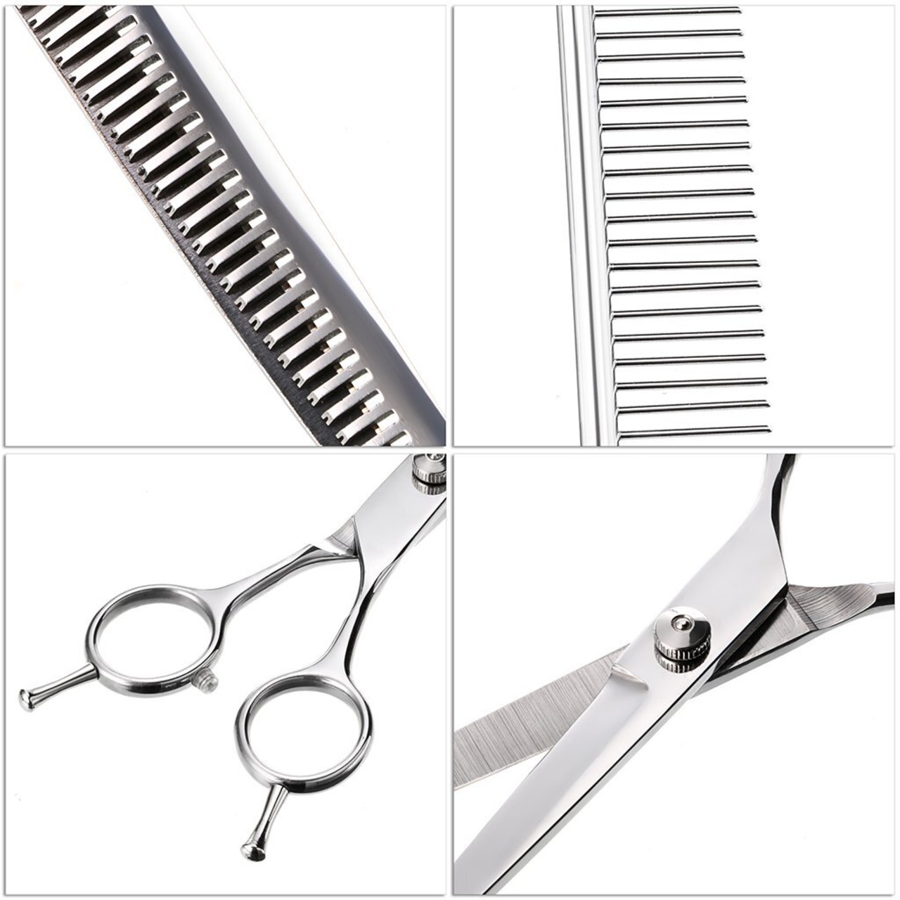 Sumnacon トリミング ハサミ 犬 ステンレス トリミングシザー スキバサミ ペット 猫 散髪用ハサミ すきばさみ セット カーブ ハサミ シザー 散髪 理髪 美容工具 ケース付け 6点セット