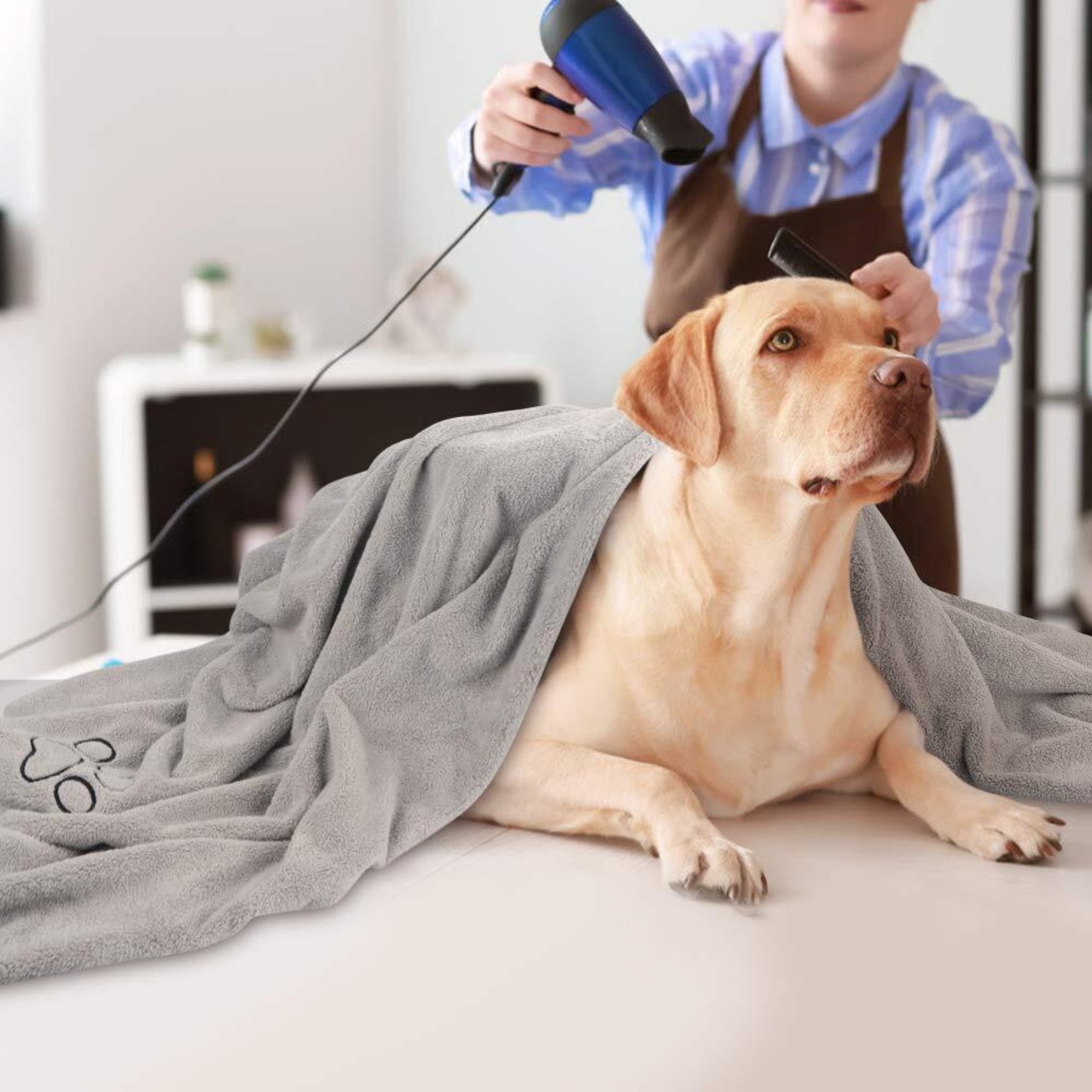 Sunland ペット用 タオル 超吸水 厚手 超ソフト マイクロ ファイバー 犬 猫 体拭き 77cmx127cm ライトグレー