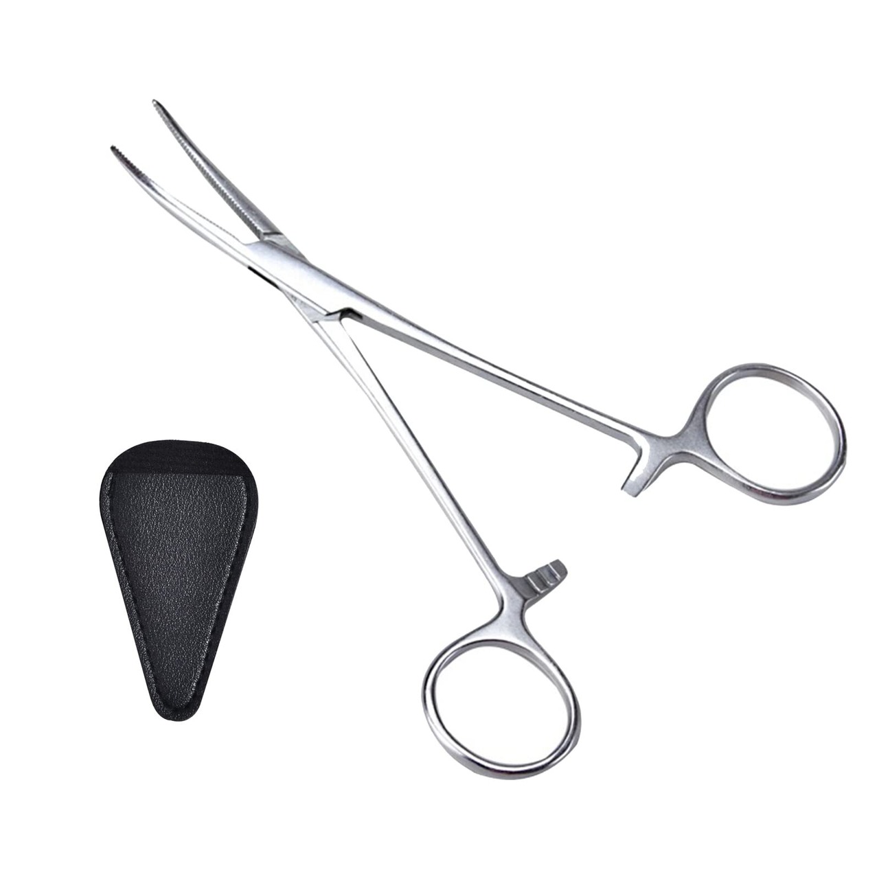 DFsucces 毛抜きかんし 反型 ペット耳の毛抜き用 125mm クリーニング ピンセット お手入れ用品 ペットの耳の毛抜きや手芸、裁縫に(革ケース付き)