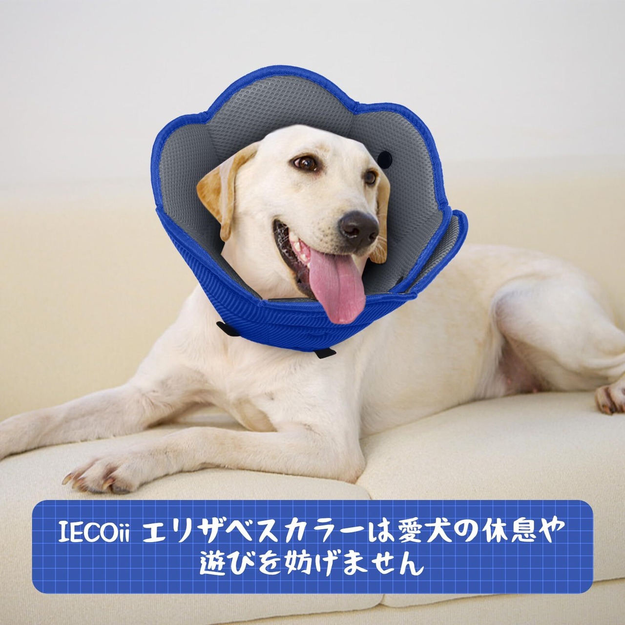 IECOii エリザベスカラー 犬 猫 調整可能 通気性 軽量 柔らかいイヌ カラー 傷舐め防止 引っ掻き防止 傷口保護 術後ケア 大型犬 ブルー XL