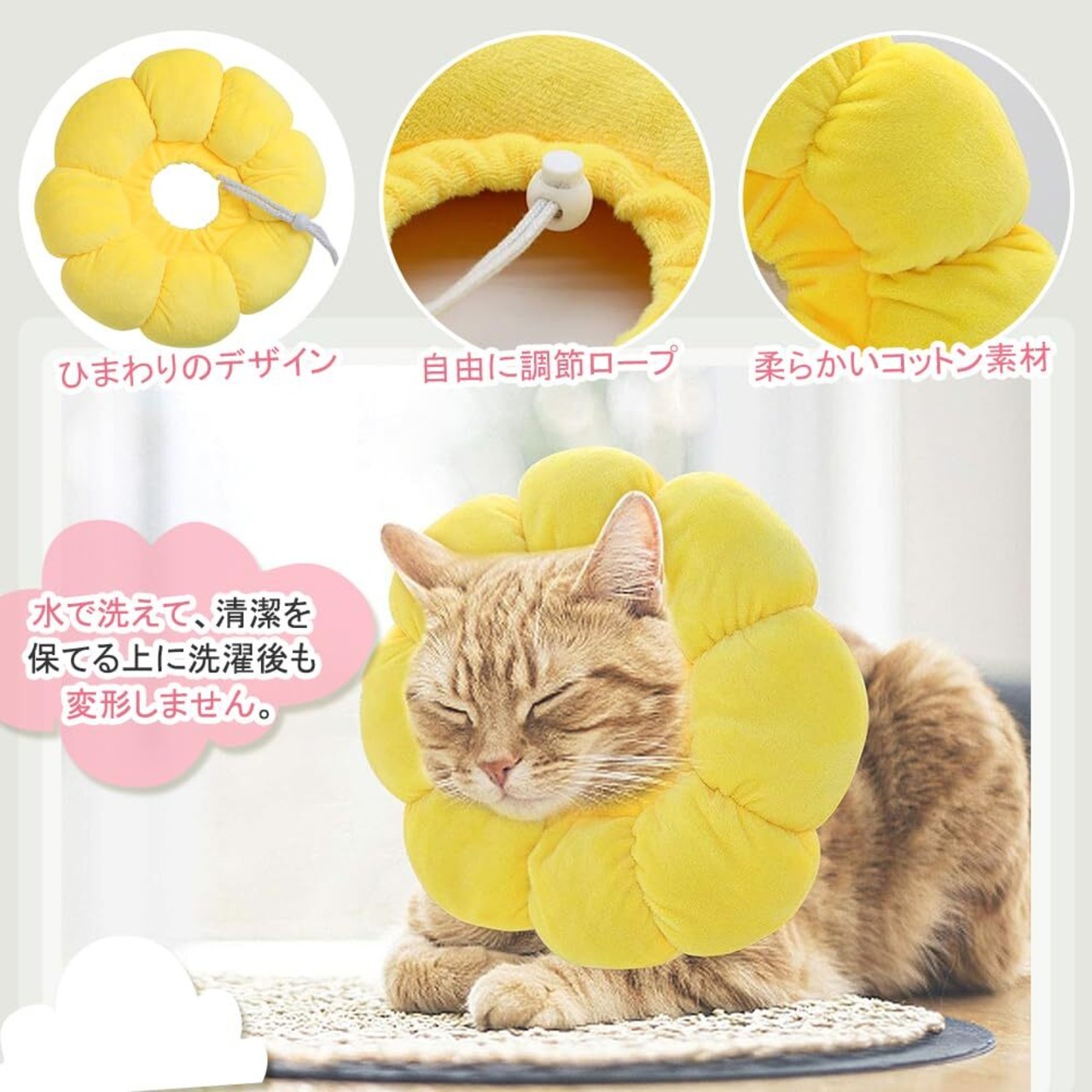 猫 犬 エリザベスカラー ペット用品 引っ掻き防止 調整可能 柔らかい 布製 超軽量 通気性 かわいいひまわり型 手術後のケアに ペット保護襟 (M)