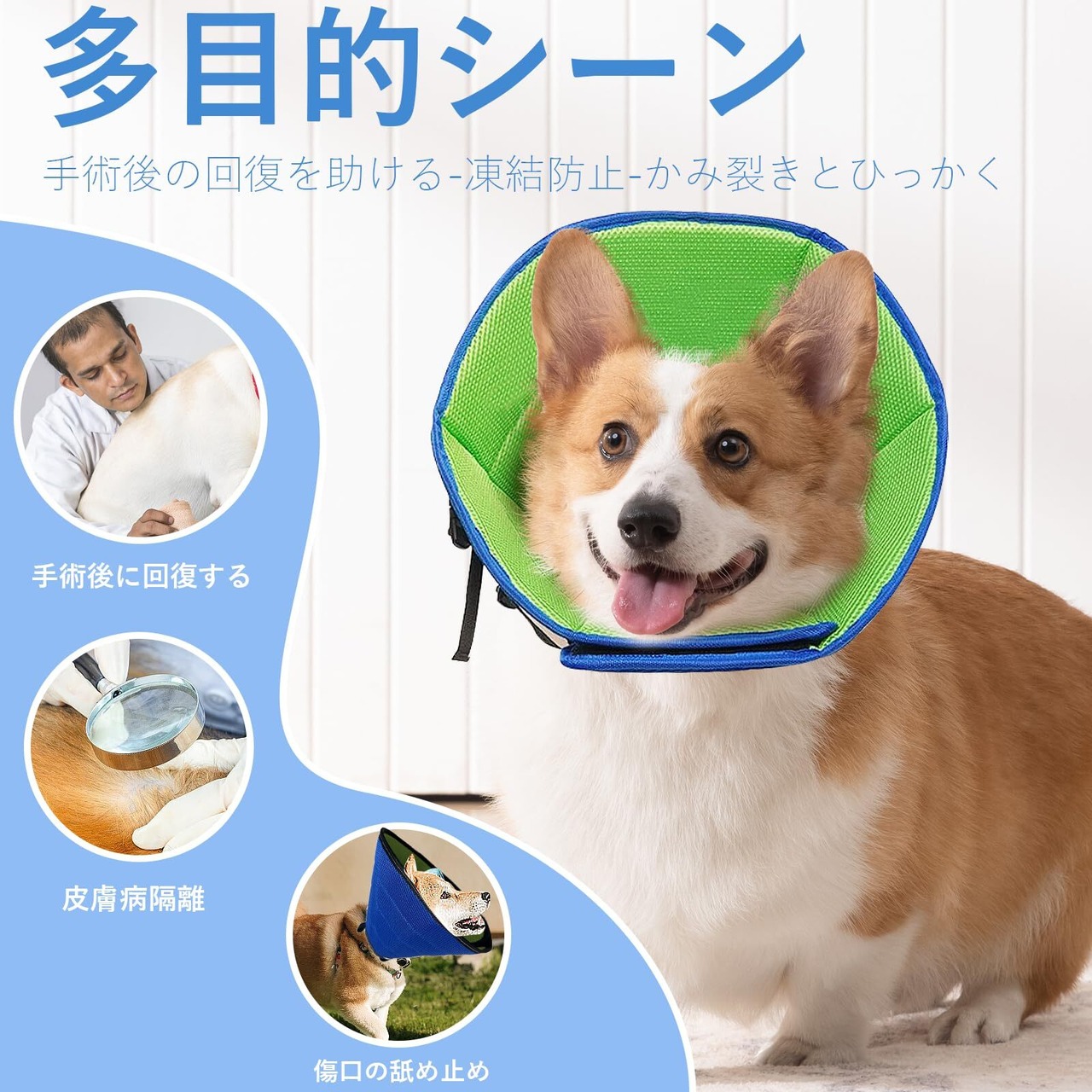 【実用性抜群&犬 エリザベス】カラーの首回りサイズは簡単に調整でき、ペットに完璧にフィットします。術後ケア、健康チェックなどに付き添い、装着すると首元に枕のような感じで、ペットにもっとのケアをすることができます。さらに、簡単に折りたたんで持ち運びでき、旅行や日常の使用に非常に便利です。