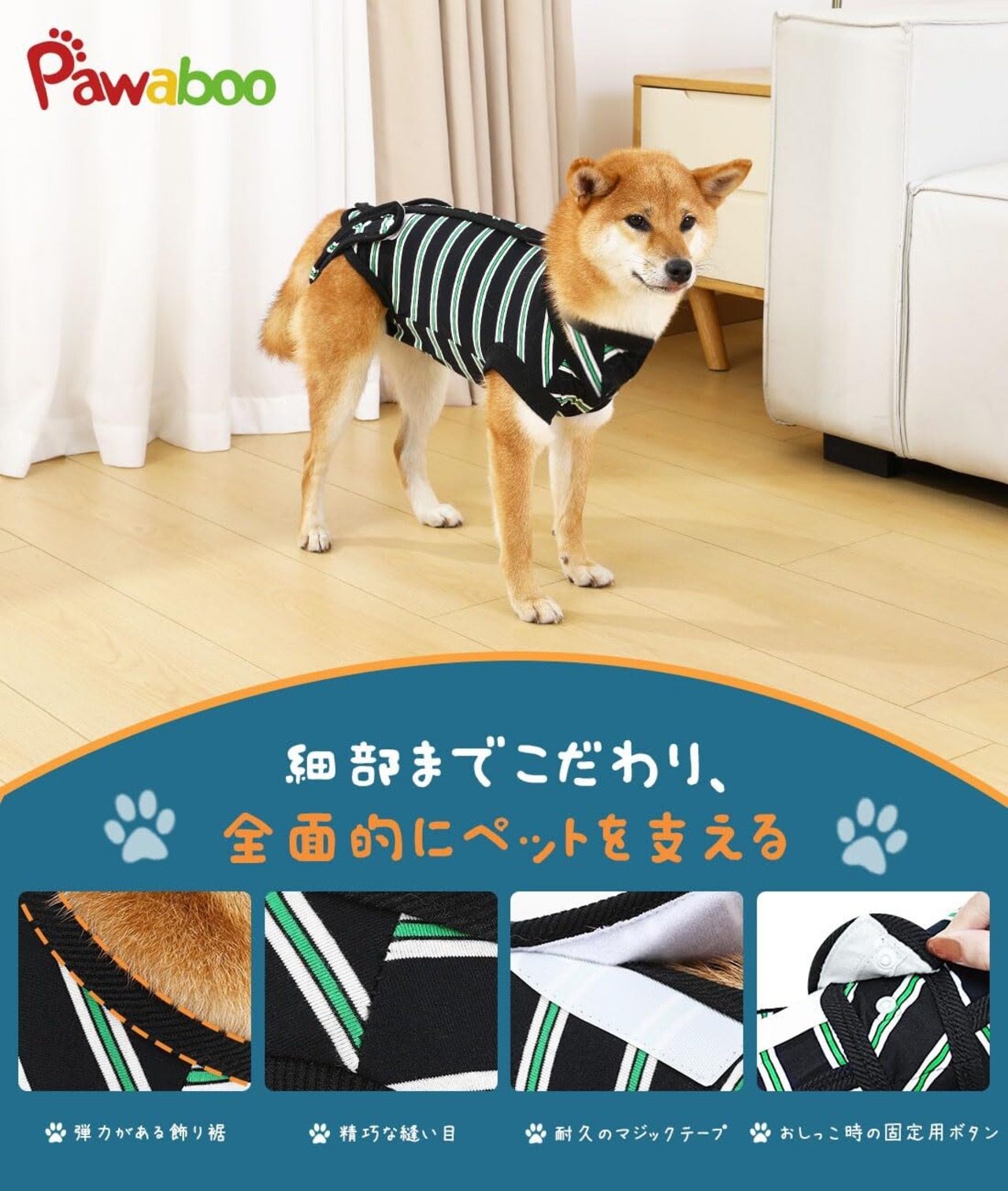 Pawaboo 術後服 ペット用 ペット用術後服 犬用 猫用 介護服 避妊 去勢手術 術後ウェア 傷口保護 舐めさせない マジックテープ 雄雌兼用 排泄に影響しない 離乳 皮膚保護 Mサイズ Black