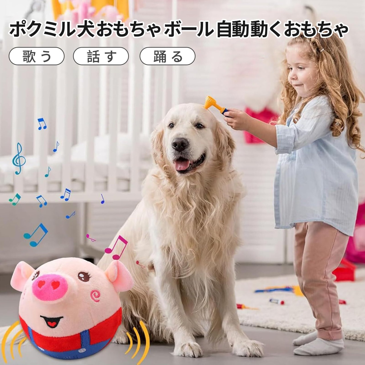 【使用が簡単】 1、電源ボタンを押して、ローリングボール犬用おもちゃを起動します。録音が完了すると、犬用おもちゃは録音を再生し、振動を開始します。 2.、優しく叩くと、おもちゃは音楽モードに入り、振動を始めます。曲が終わるのを待ってから再度叩くと、次の曲が再生されます。音楽は120曲が含まれています。 3、 使わないときは、電源を切り、ぬいぐるみカバーに戻して保管してください。