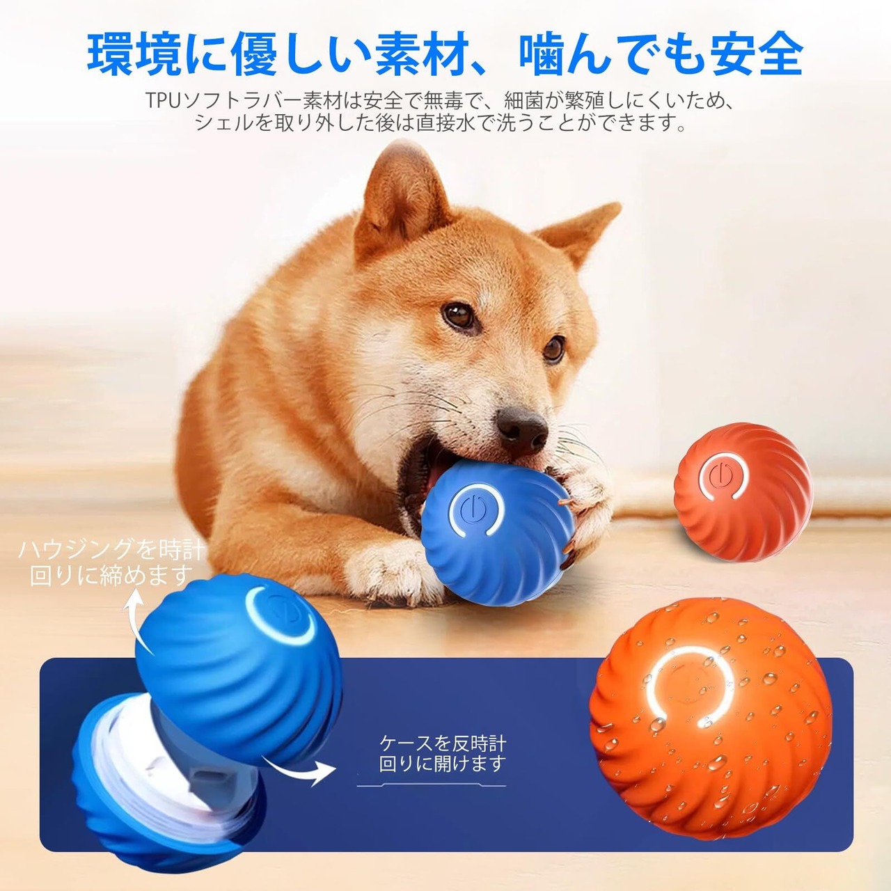 【小型犬に適用&要注意事項】犬ボールのサイズは5.6CMので、豆柴犬、トイプードルやチワワ、ポメラニアンなどの小型犬が適用します。*要注意:噛むおもちゃではないので、ケガをしないように、愛犬に長時間噛ませることは避けてください。飼い主の監視下での使用をお勧めします。噛む力が強い犬の場合、初めて使用する前にトレーニングが必要ですね。**片手で電源を入れるのが難しい場合は、両手の指の関節をボタンに当てて3秒間押してください。