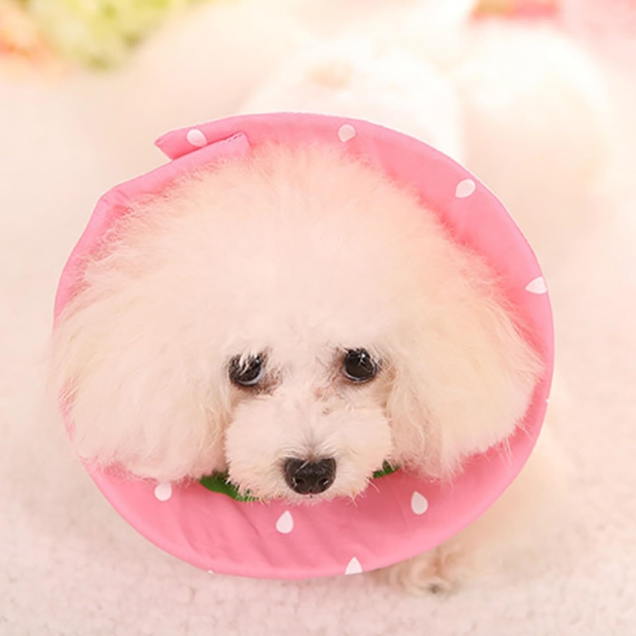 Dollionエリザベスカラー 猫 犬 術後ケア 傷舐め防止 柔らかい 布製 超軽量 通気性保護首輪 小型犬用猫用宠物 (いちご, M)
