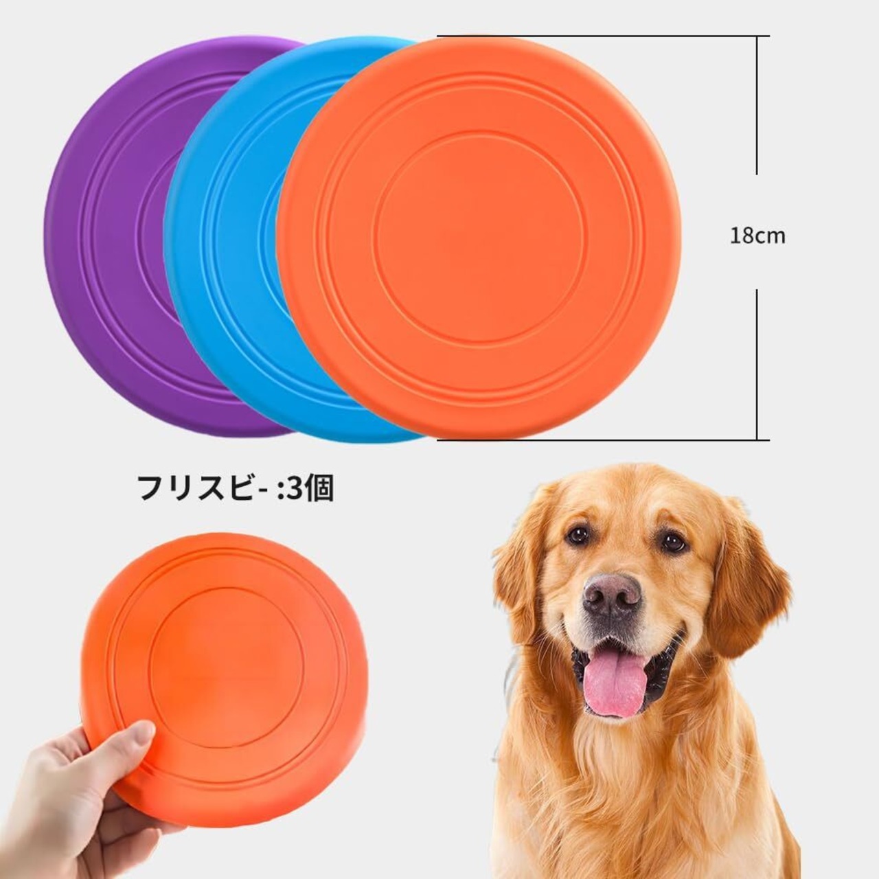 犬用フリスビー 犬 おもちゃ フリスビー 投げるおもちゃ ペットおもちゃ 噛むおもちゃ 知能訓練 運動不足解消 歯耐性ゴム シリコーン素材 大中小型犬に適応 3個セット 18cm (オレンジ+パープル+ブルー )