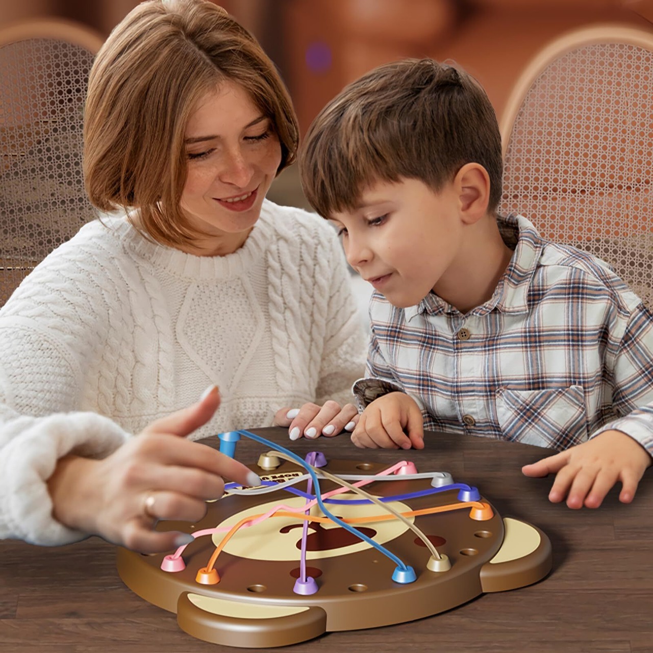 【ゲーム概要】当脳トレおもちゃは、「絡まったロープを最短時間、または最小回数で解きほぐす」というシンプルながらもクセになるゲームです。遊び方が簡単なのでお子様からご年配の方まで誰でも気軽にプレイすることができます!