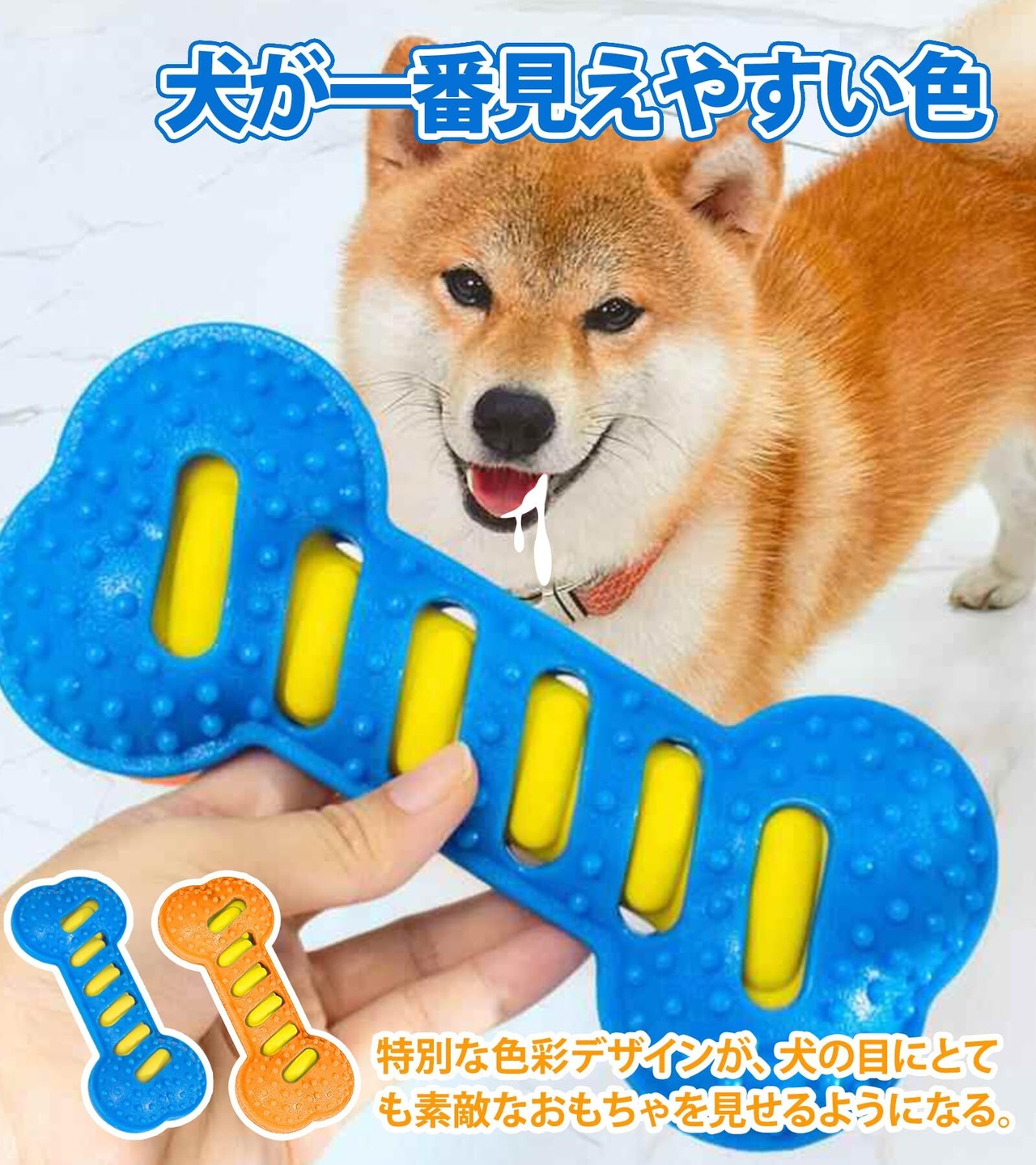 【ストレス解消・運動不足解消】:頑丈で嚙みつきにくい、犬の運動不足を解消し、無駄な嚙みなどを減らします。また、犬におもちゃを与えることで、家具や他のスリッパなど人間が使うものを噛んだり壊したりしなくなるというメリットもあります。