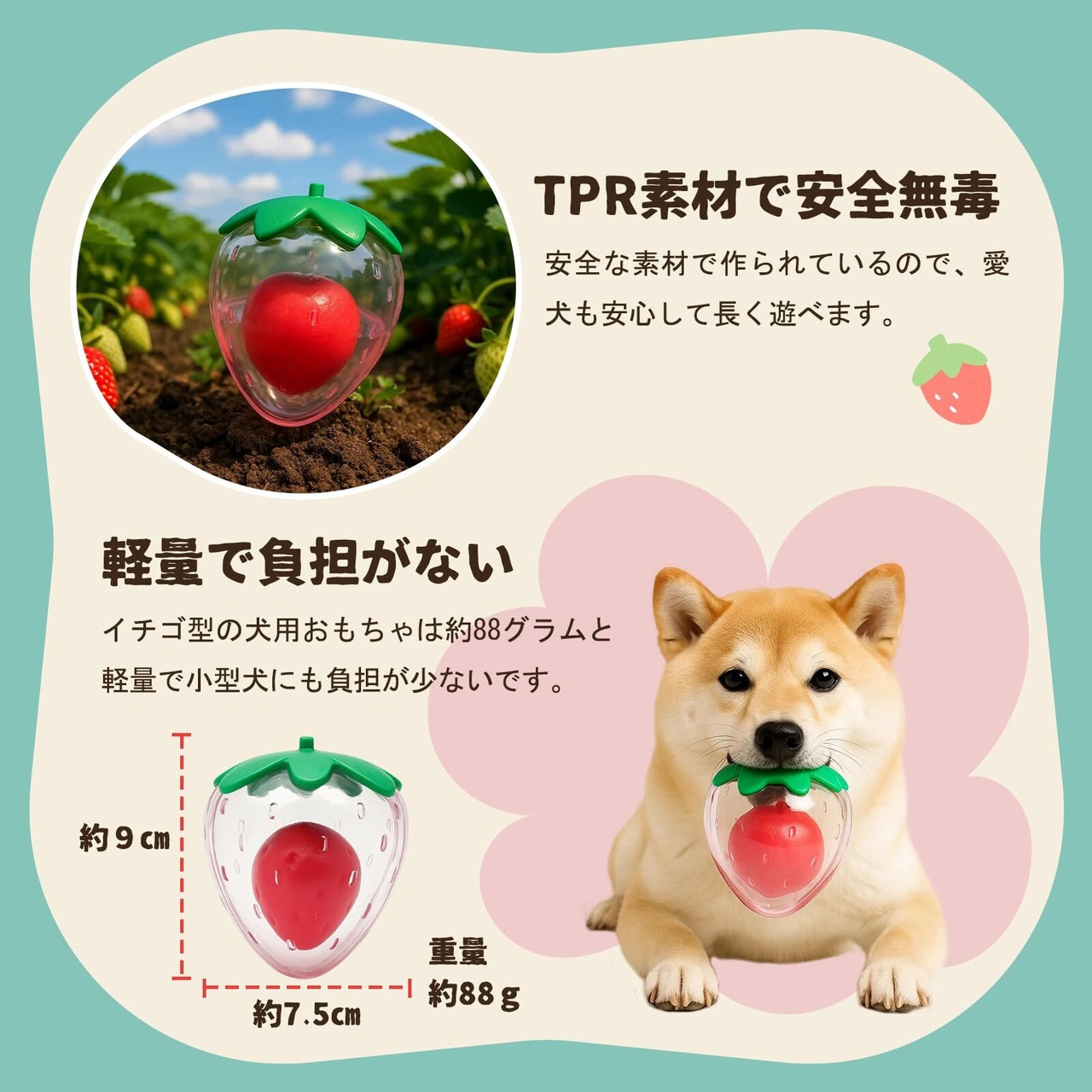 【可愛いデザイン】このユニークで愛らしいイチゴ型の犬用おもちゃは、遊び心のある楽しいデザインです。愛犬の興味を引く鮮やかな色合いで、見た目も楽しい犬のおもちゃです。プレゼントにもおすすめです。