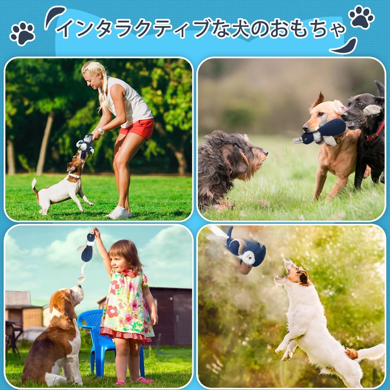 【 3種類の可愛いデザイン&テニスボール仕様】 ライオン・オウム(テニスボール使用)・アヒルのセット。愛らしい見た目ながら、中型犬~小型犬の遊びに最適。オウム部分のテニスボールが弾む動きで、愛犬の狩猟本能を刺激します。