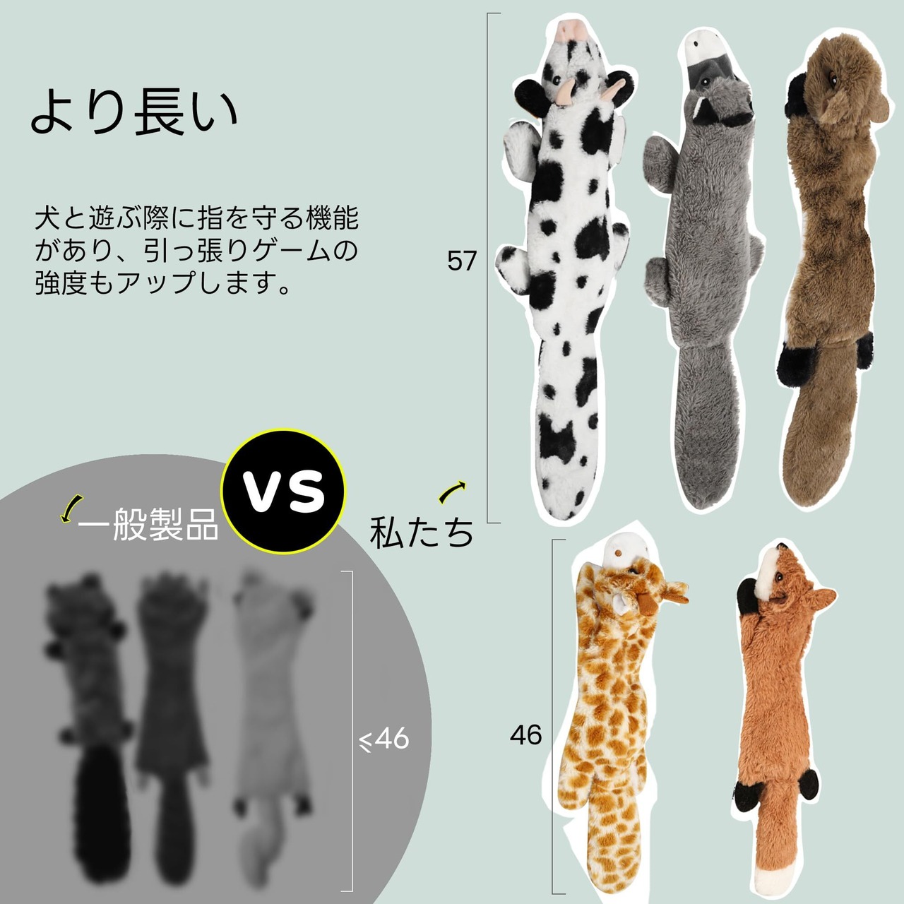 2つのスクイーカー内蔵:おもちゃには頭と尾にスクイーカーが内蔵されており、犬の注意を引きます。内蔵されたパリパリ音のする紙と一緒に、面白いスクイーカーが犬の狩猟本能を刺激し、もっと遊びたくなるように促します。中型から大型犬に適しています。