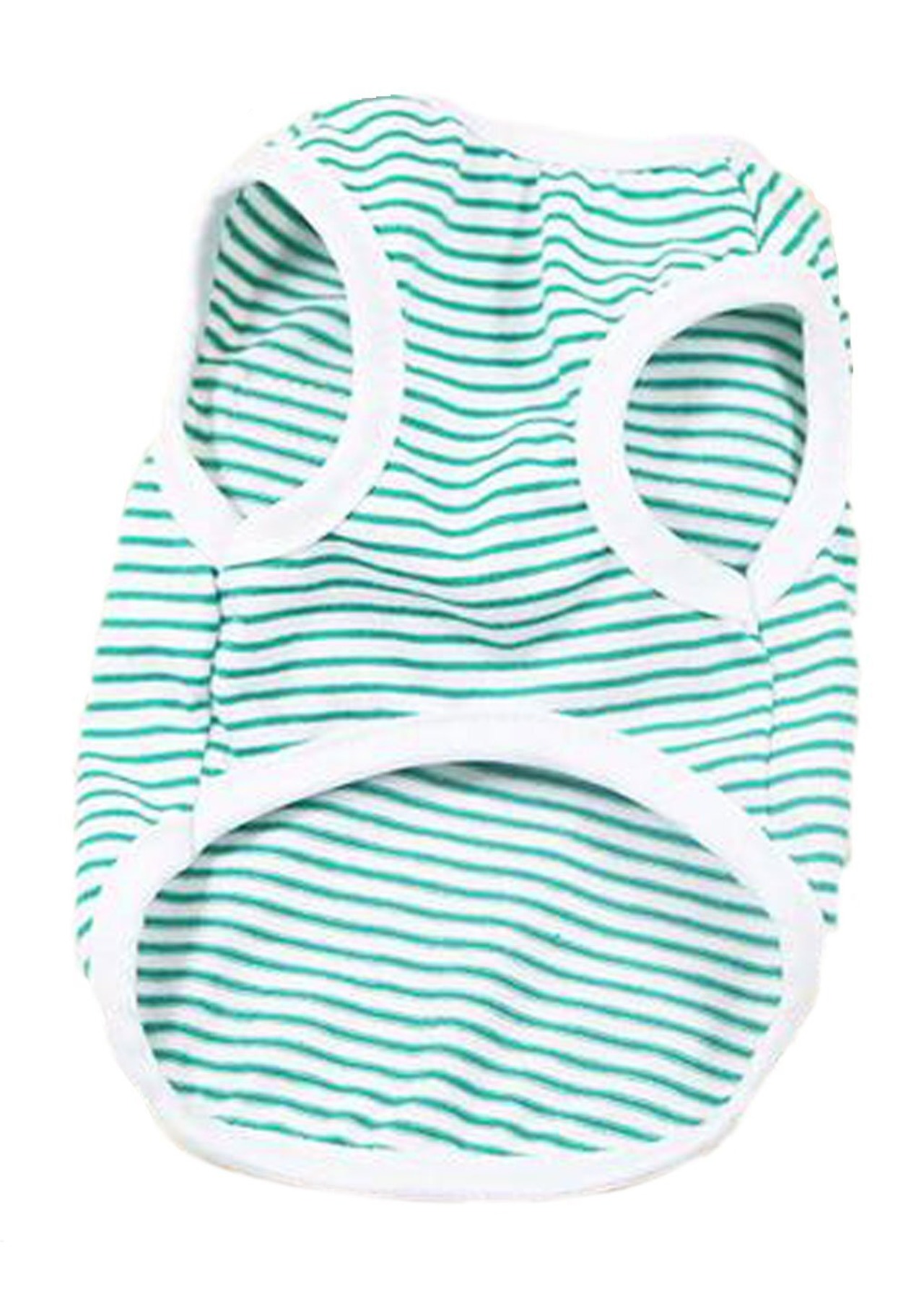 ふく福 可愛い 綿製 小中型犬服ストライプ Tシャツ 犬服 ドッグウェア ベスト お散歩 春夏服 カジュアル ファッションネイビー風 (M, グリーン)