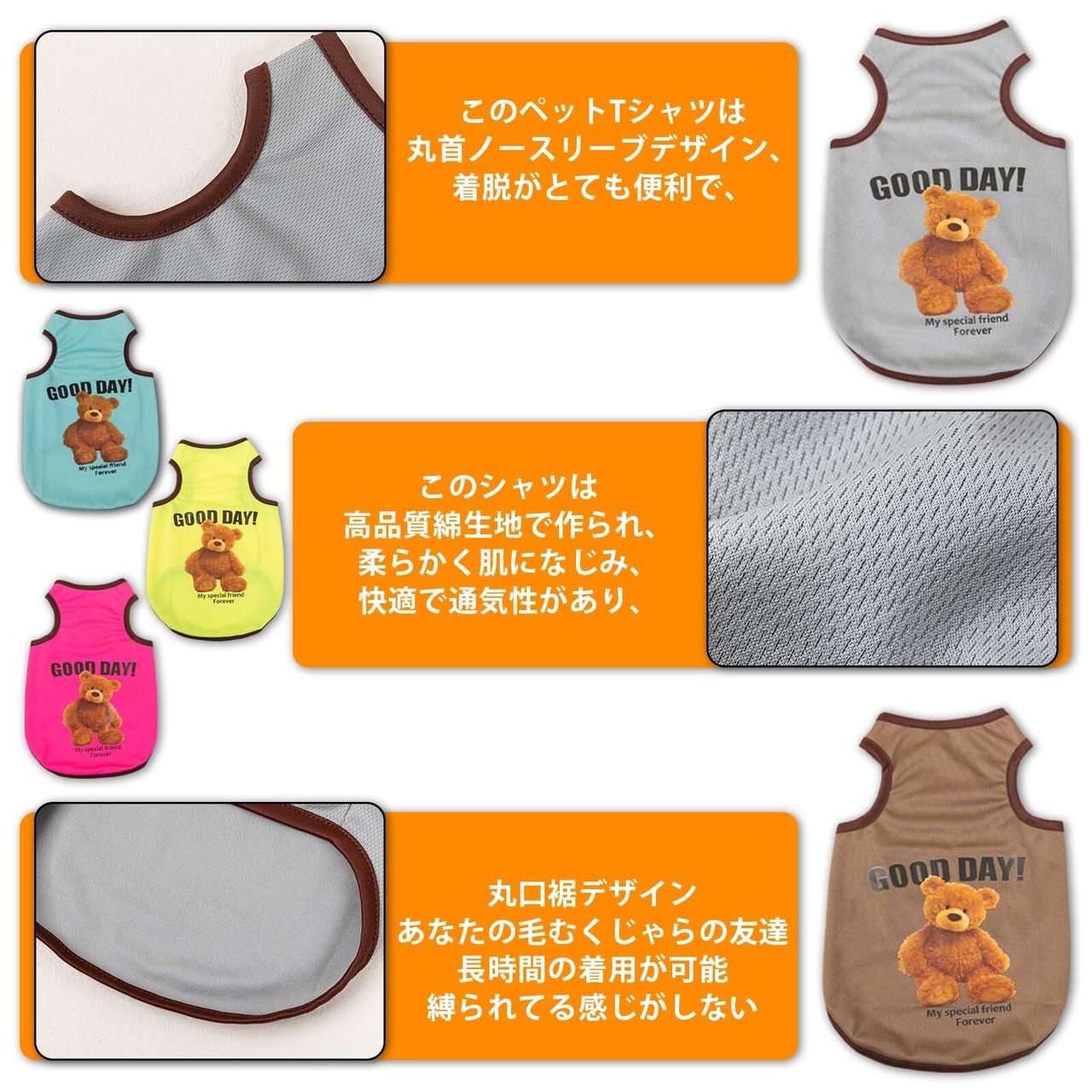 犬服 Tシャツ 春 夏 犬の服 可愛い おしゃれ くま柄 ペット 服 ベスト 猫服 薄手 通気性 ドッグウェア 小型犬 中型犬 家着 お出かけ お散歩 虫除け 脱毛保護 焼き防ぐ (グレー, M:2.5-3.5kg)