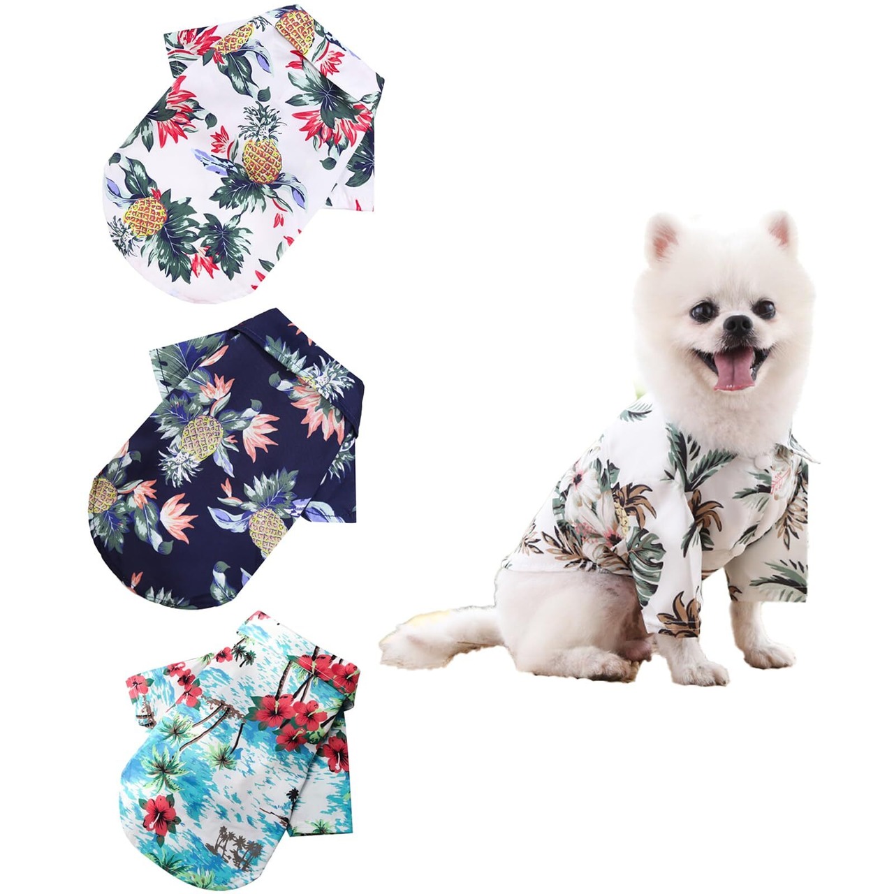 Peukialt 犬服 ペット ビーチシャツ 3個入 春夏秋 可愛い 小中型犬服 薄 ハワイアンシャツ ドッグウェア ペットウェア 通気性 S~2XL お散歩お出かけウェアに ドッグウェア ベスト 日焼き防ぐ 脱毛保護 (ホワイト、ブルー、シアン, M【日本国内出荷】)