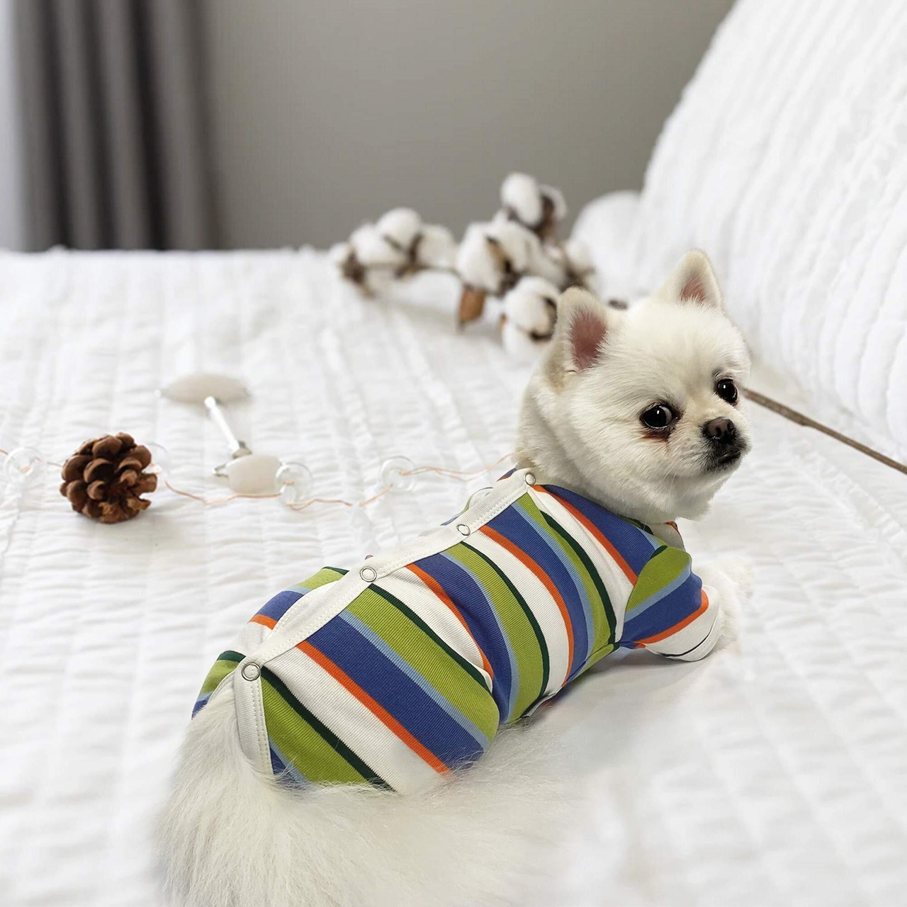 TONY HOBY 犬術後服 オス/メス別け 犬用春夏パジャマ 柔らかいコットン生地 抗菌 傷口保護 小型犬の部屋着 冷房対策 グリーン(男の子)