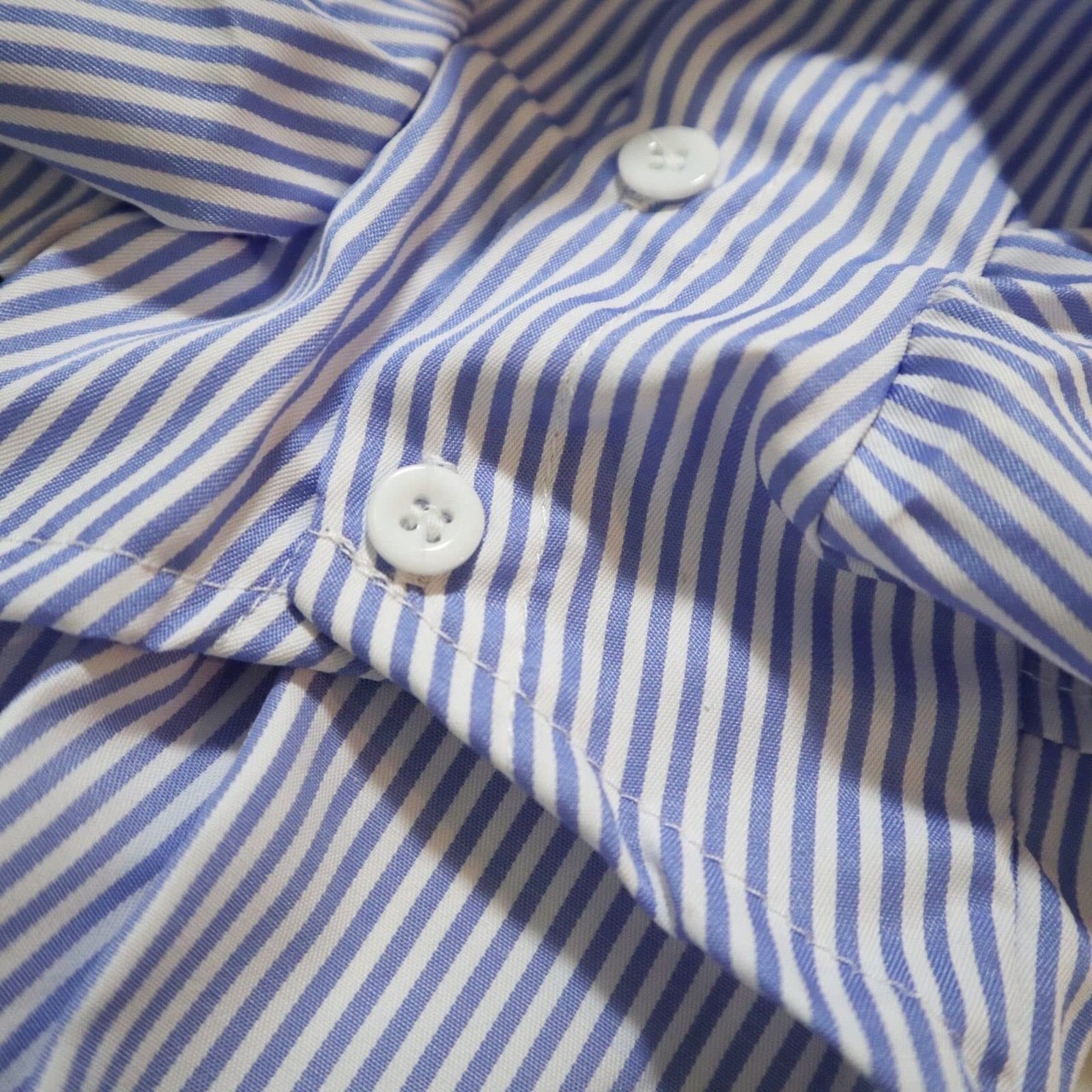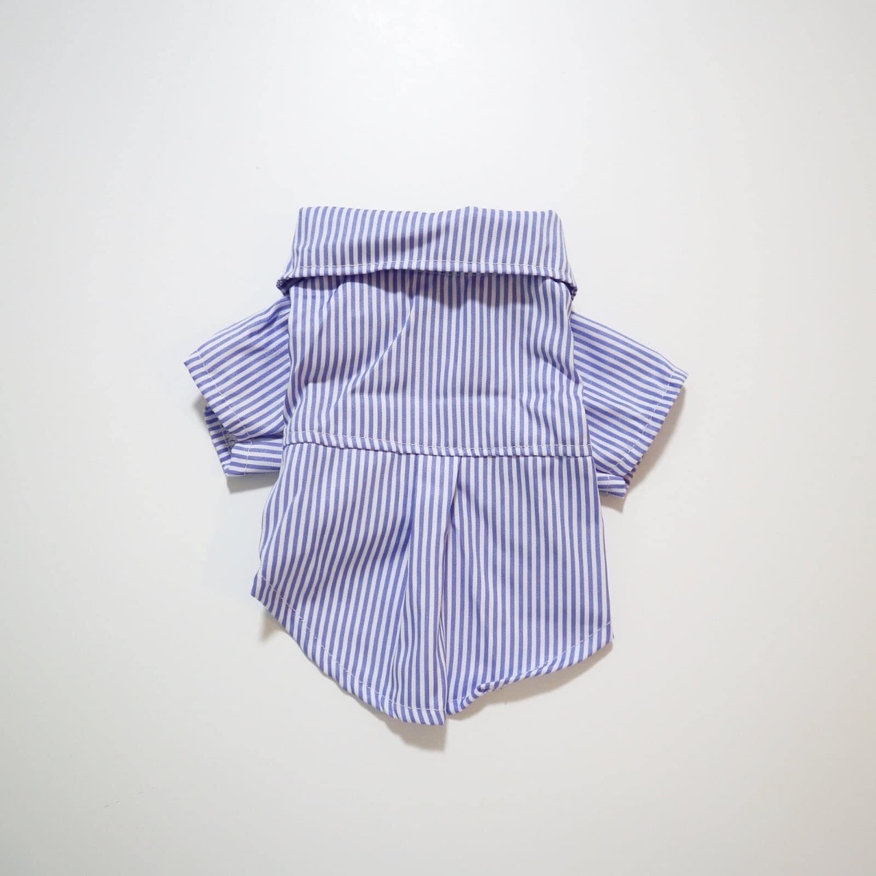 ◆涼しげな爽やかストライプシャツ、お出掛けにはとてもお洒落。伸縮性なし。◆お勧めポイント:お腹部分にボタンがついていて着脱簡単、デザインも可愛い◆お揃いで着せますと可愛いさ倍増し